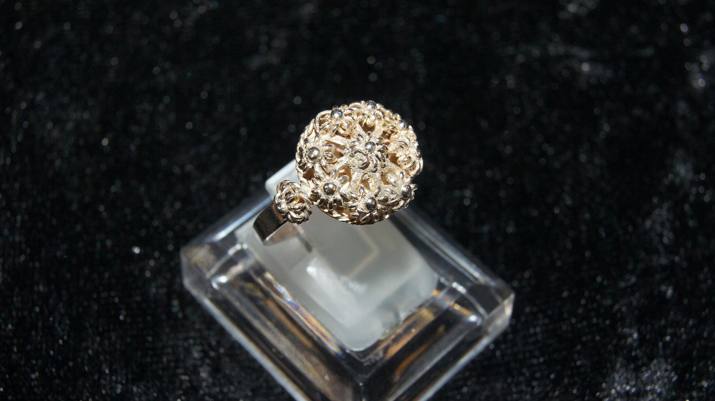 Sølvring med ciseleringer, stemplet JAa 935, str.