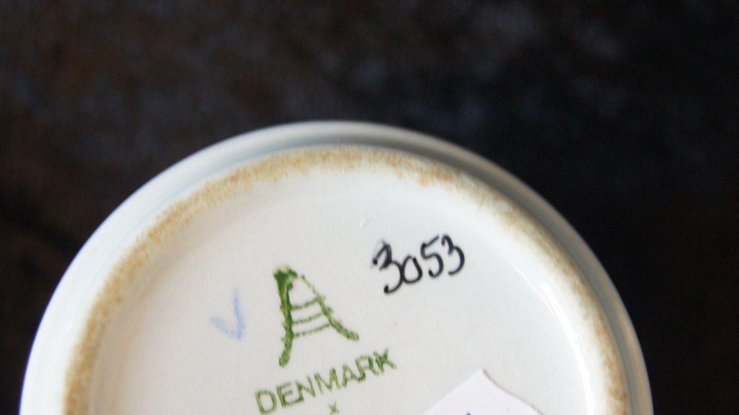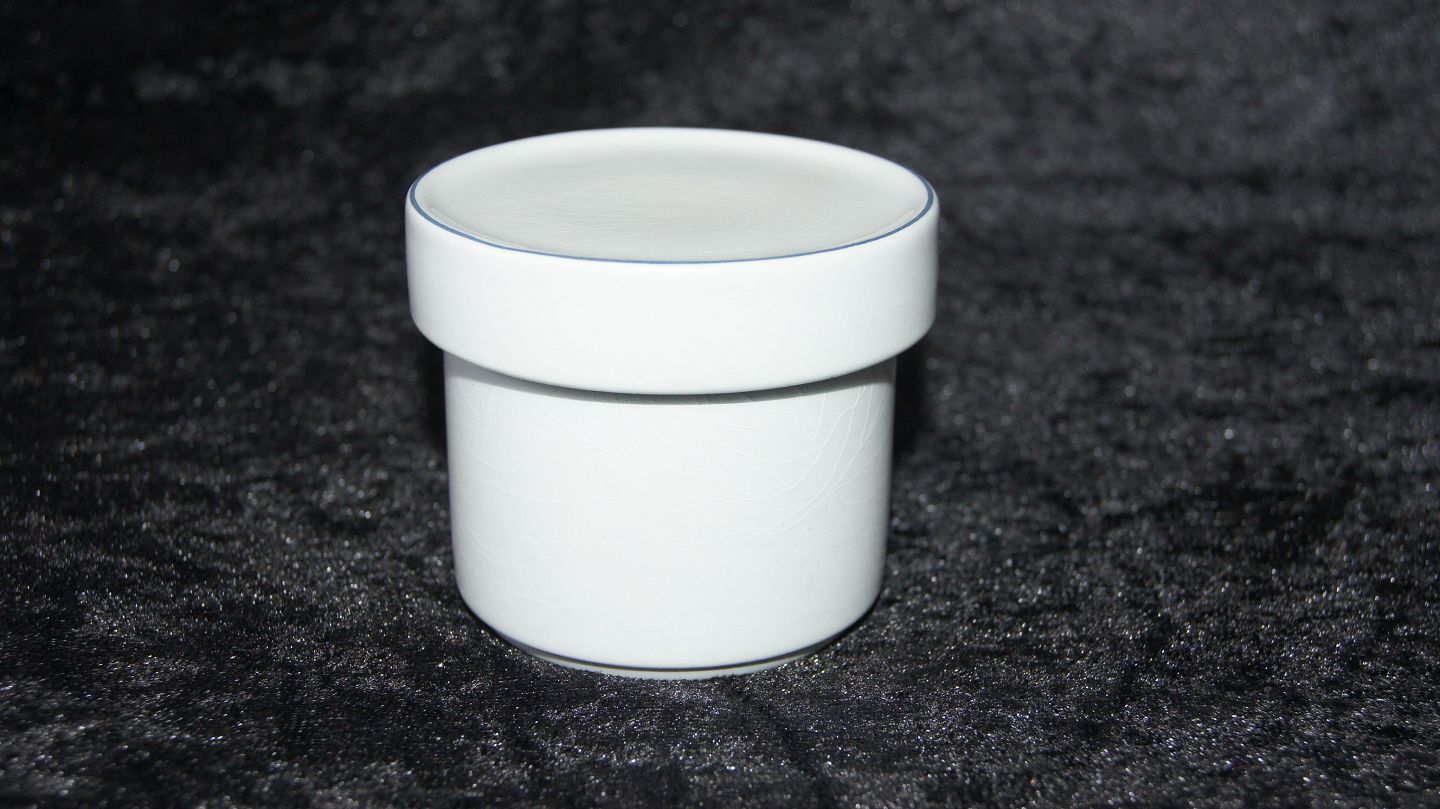Aluminia & Kongelig #Blåkant Rund låg krukke Dek.nr. #3053 Diameter: 6,5 cm. Højde 6,5 cm. Brugsspor men unden skår