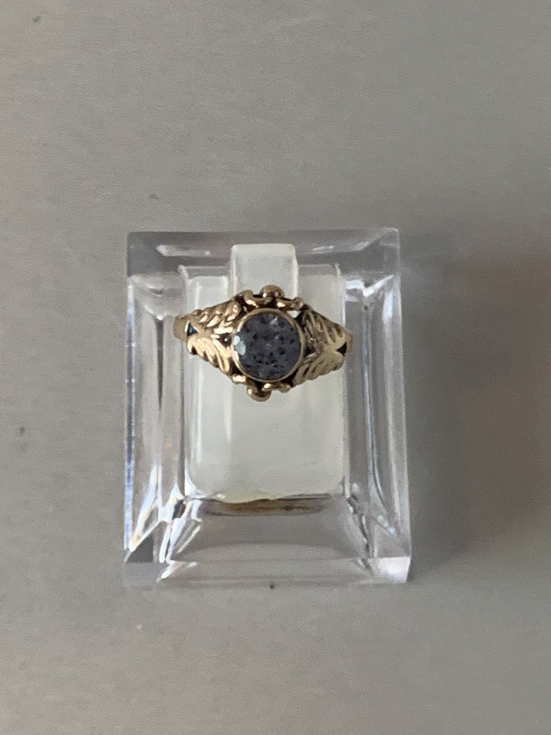 14 karat Guld Vintage Damering med lyseblå sten.