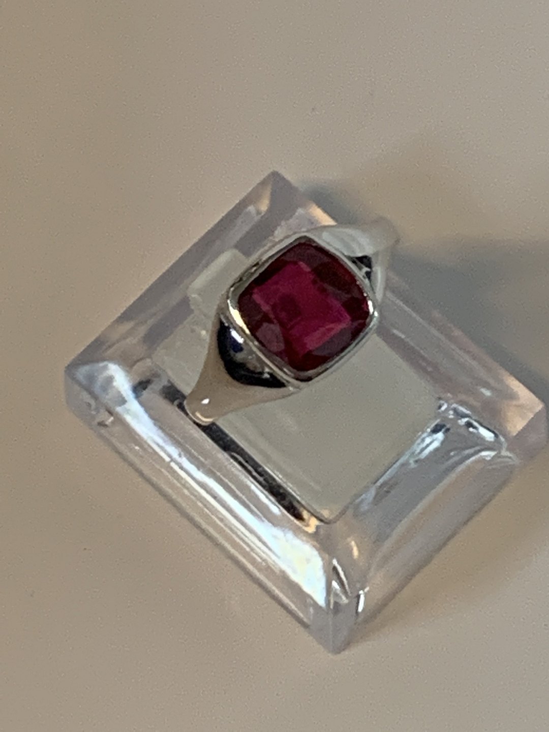 Ring with red stone in 14 carat white gold.