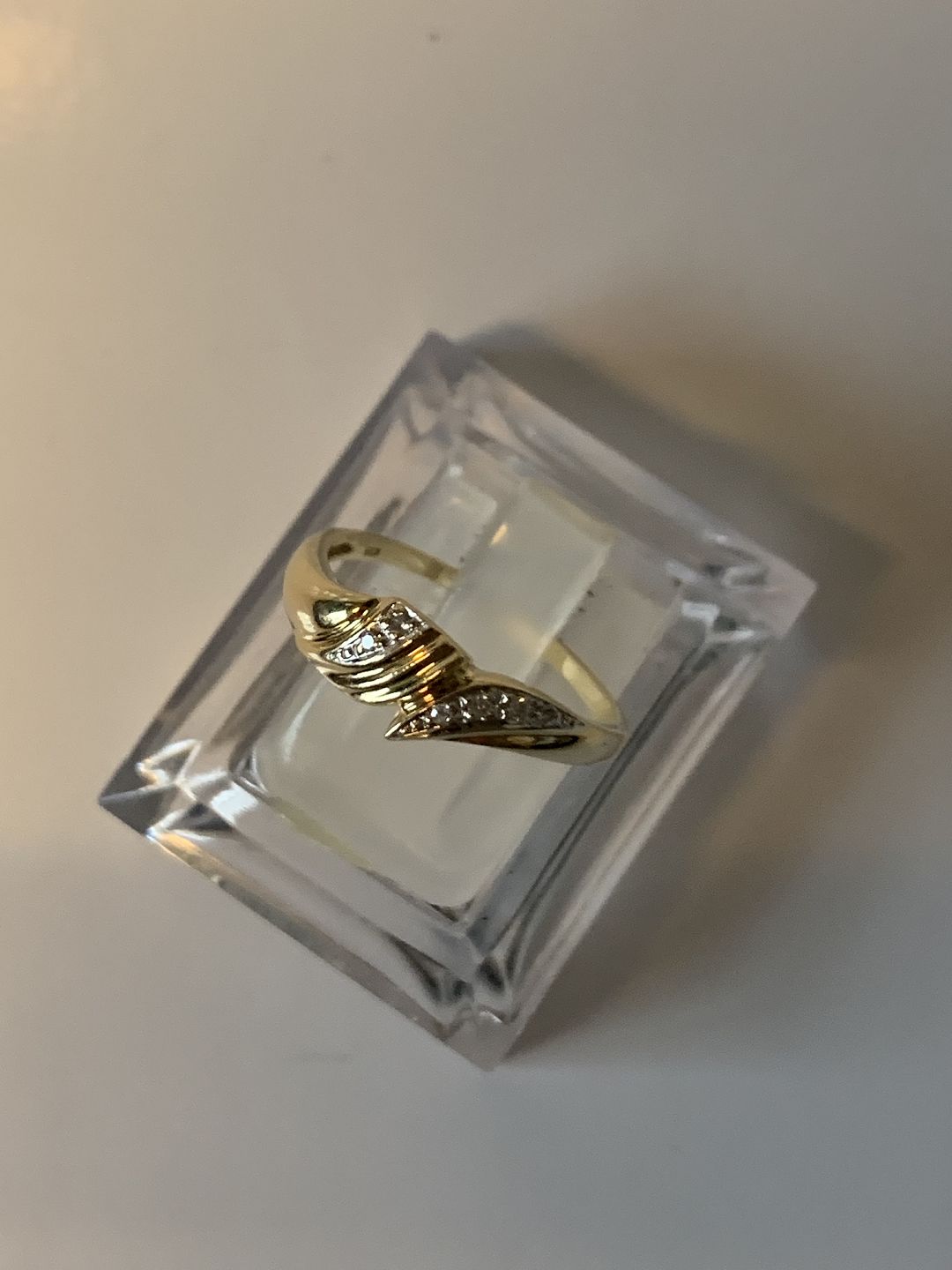 Damering med brillanter i 14 karat guld Stemplet EC 585 Størrelse 57 Tjekket af guldsmed Flot og velholdt stand. Varen findes ikke fysisk i butikken. Kontakt os for fremvisning