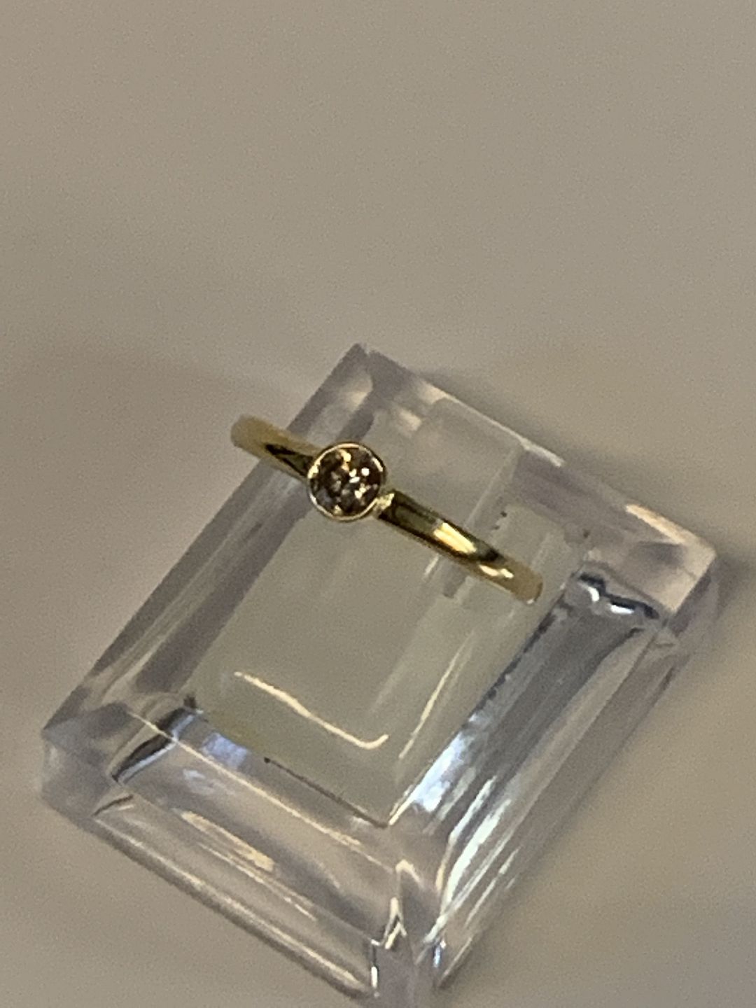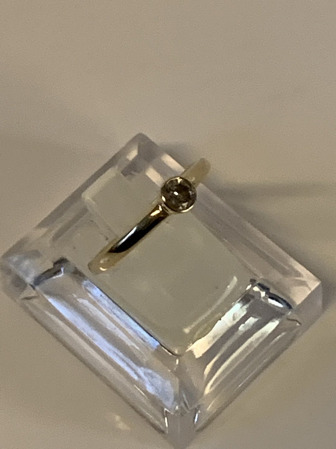 14 karat guld prinsessering med brillant Stemplet SMK 585 Størrelse 60 Tjekket af guldsmed Flot og velholdt stand. Varen findes ikke fysisk i butikken. Kontakt os for fremvisning