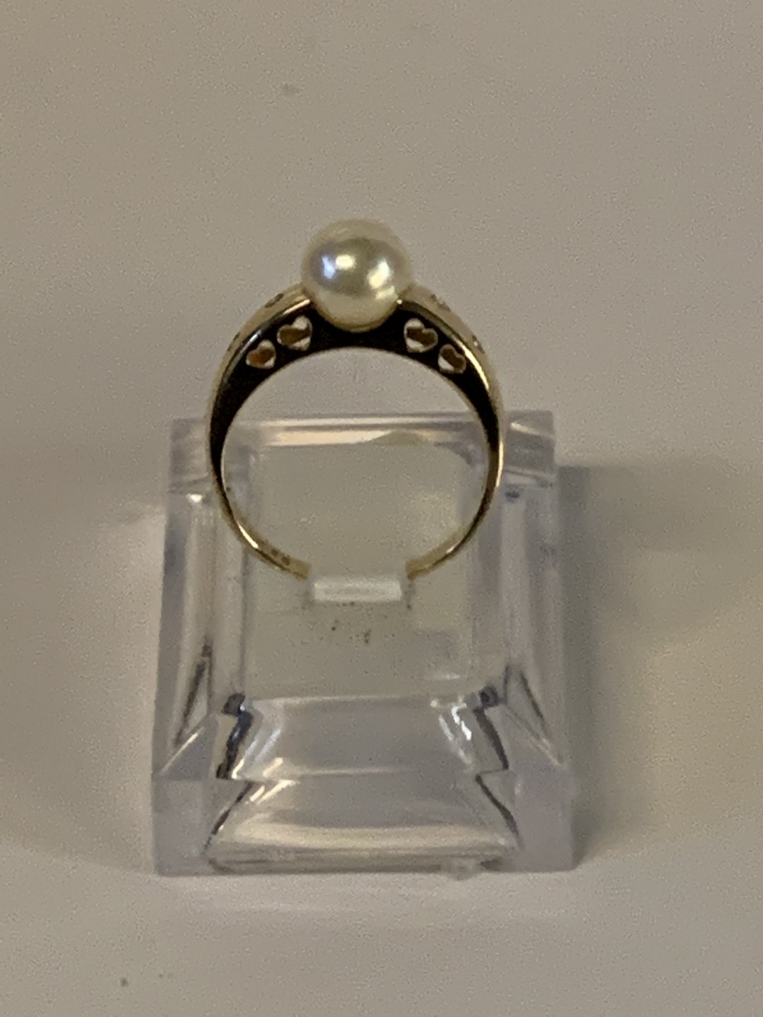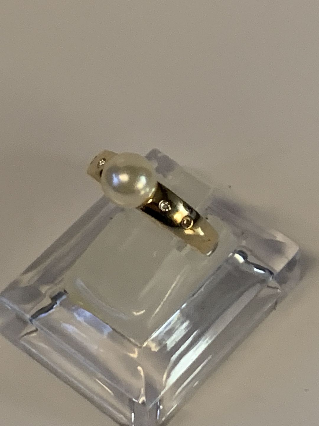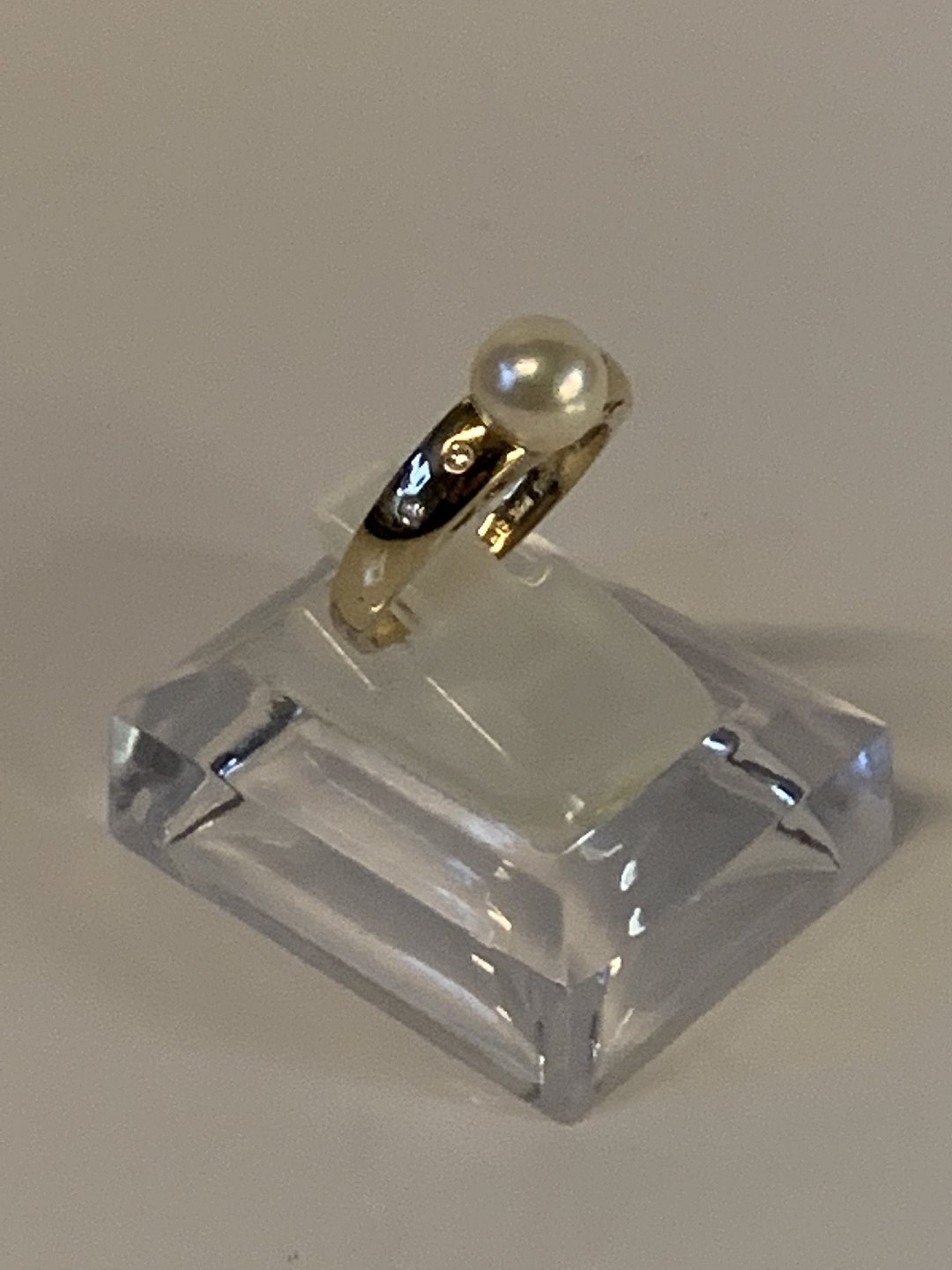Ladies ring with diamonds and a pearl in 14 carat gold Stamped BH 585 Size 56 Checked by goldsmith Nice and well-maintained condition. The item is not physically available in the store. Contact us for a demonstration