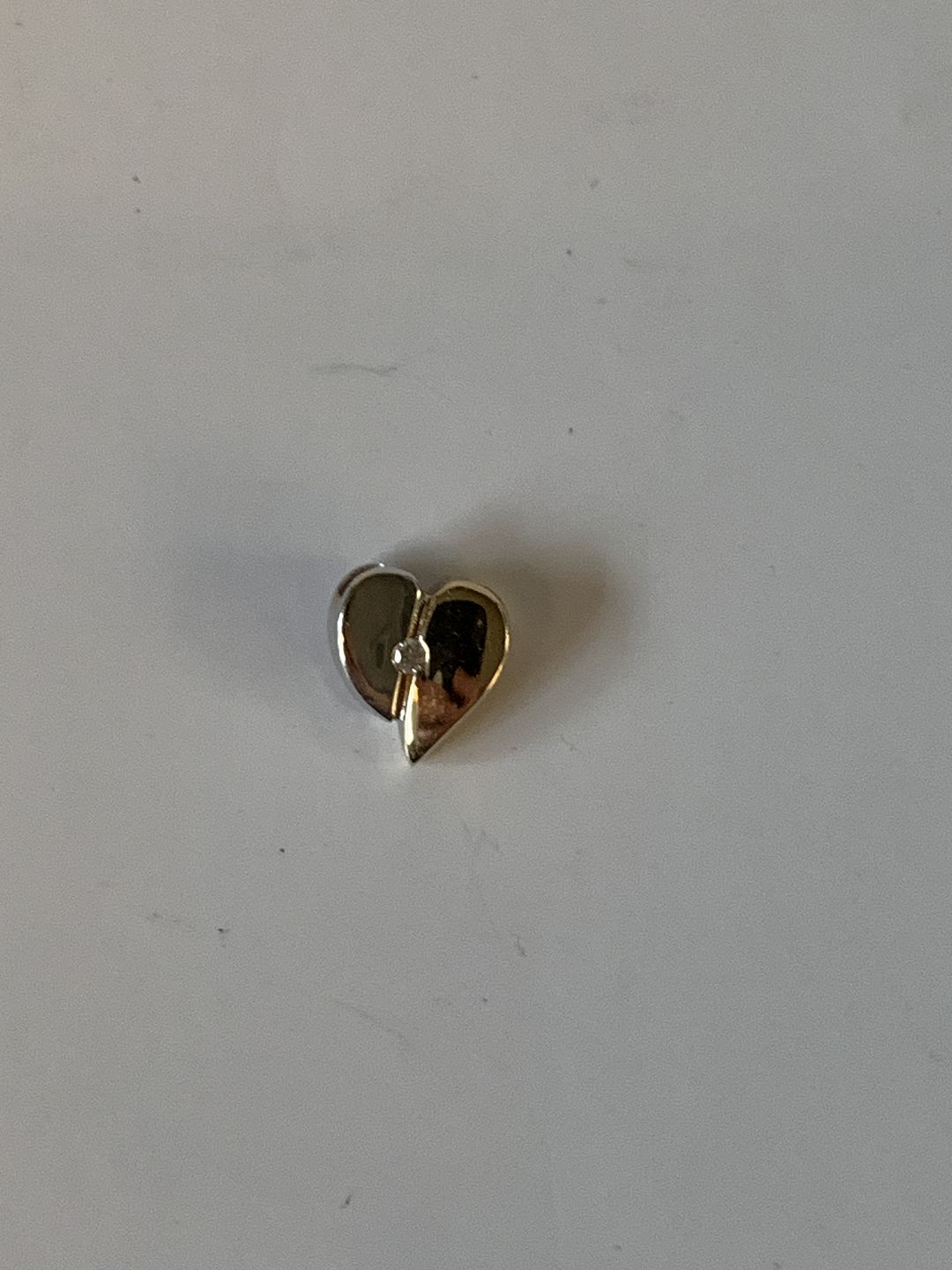 14 Karat Hjerte vedhæng med en brillant i to farvet guld Måler 26,3 mm Stemplet 585 Varen er tjekket af guldsmed , og findes ikke fysisk i butikken Kontakt os for fremvisning eller info