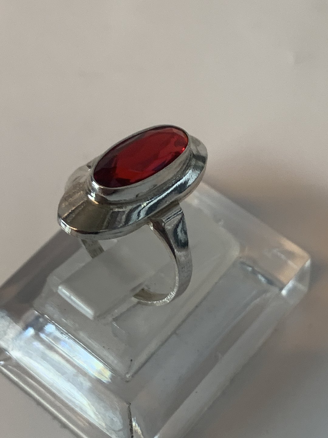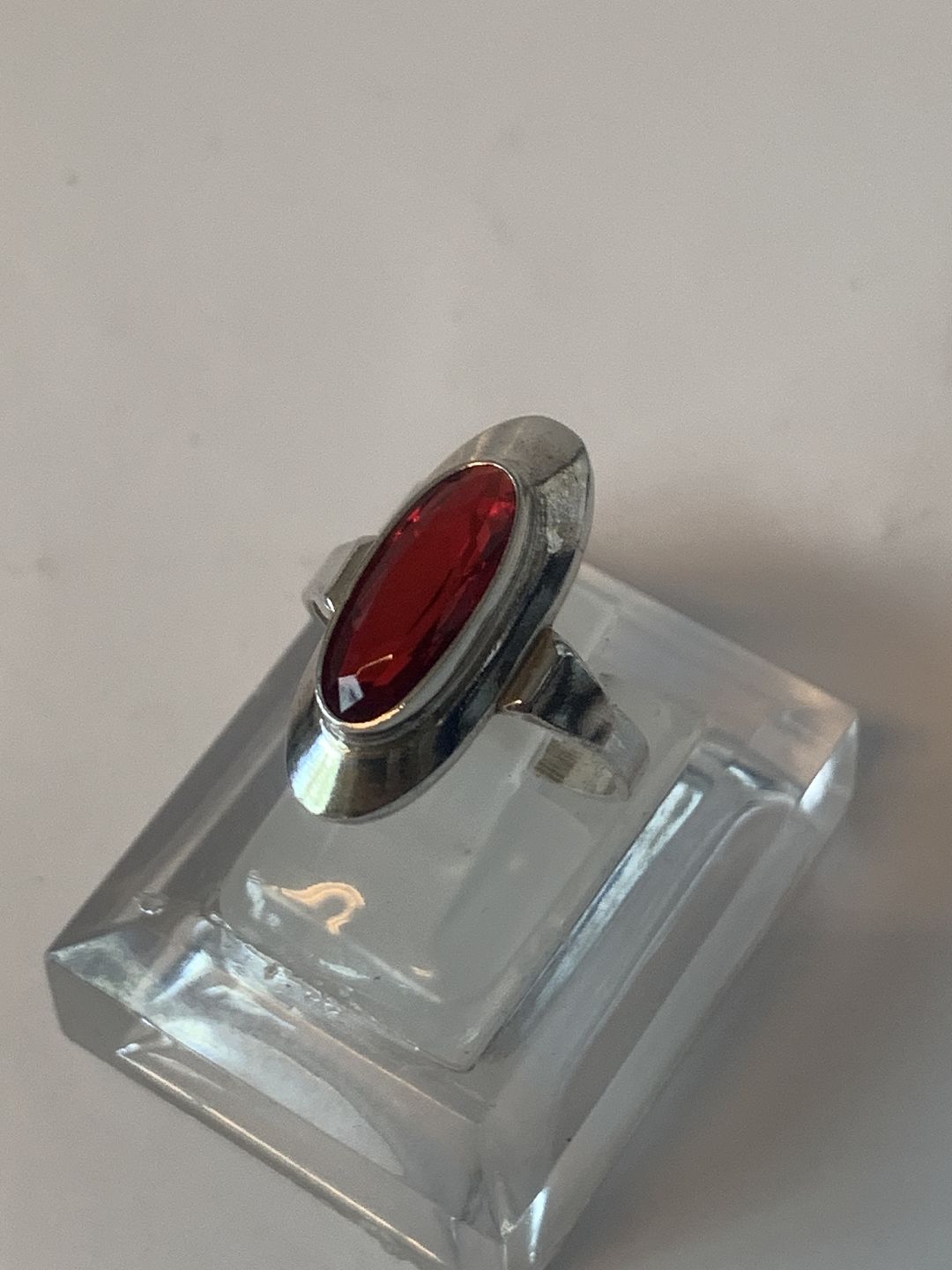 Sølv Damering med Rød sten