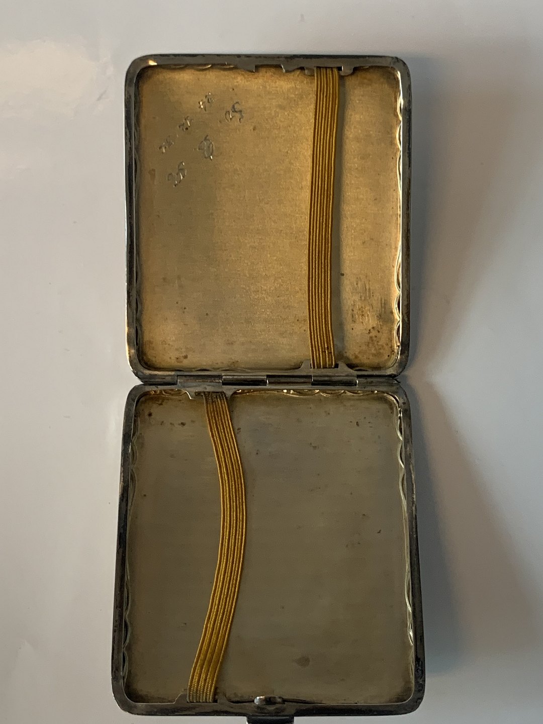 Cigarette case / Short case Silver Stamped Three Towers Engraved inside the lid Measures 8.5 x 7.5 cm Polished and nice condition