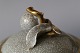 Flot lågvase fra Royal Copenhagen, med påmalet hasselnødder og blade. Vasen er desuden udført med krakeleringer, der gør vasen rustik og smuk på sin helt egen måde. Lågvasen har mange flotte detaljer. Låget er udformet som en hasselgren, hvilket gør det til noget specielt.