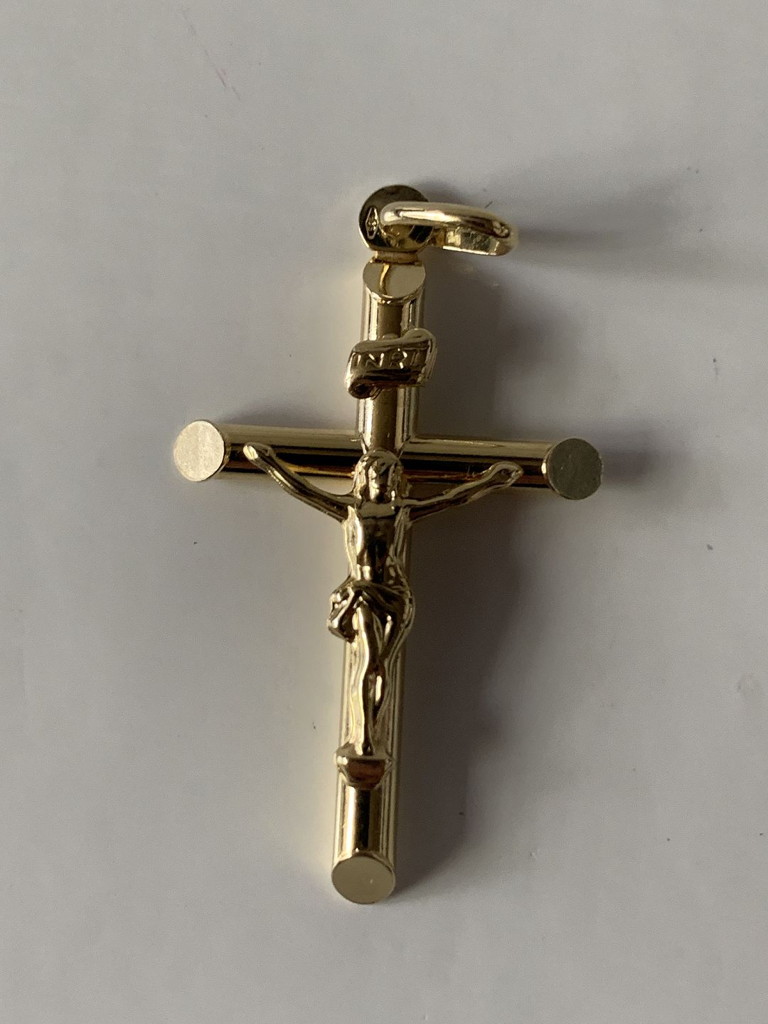 Gold cross 14 carat gold, stamped 585 BEE, beautiful pendant.