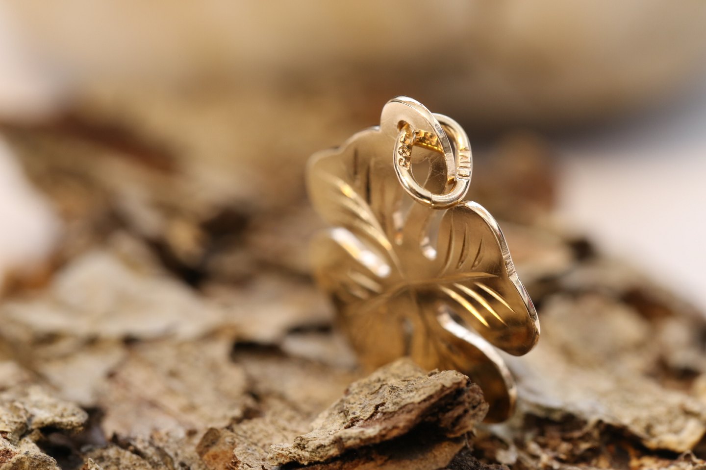 Pendant/charm shaped like four-leaf clover in 14 carat gold. Fine details and nice look.