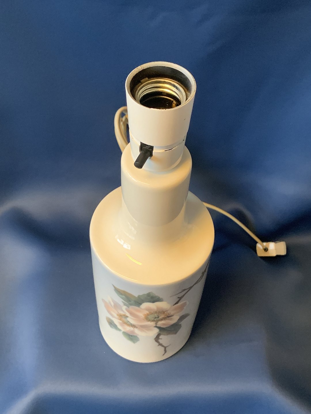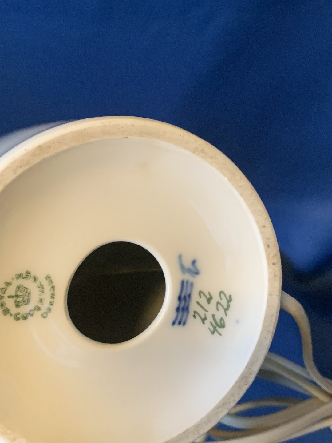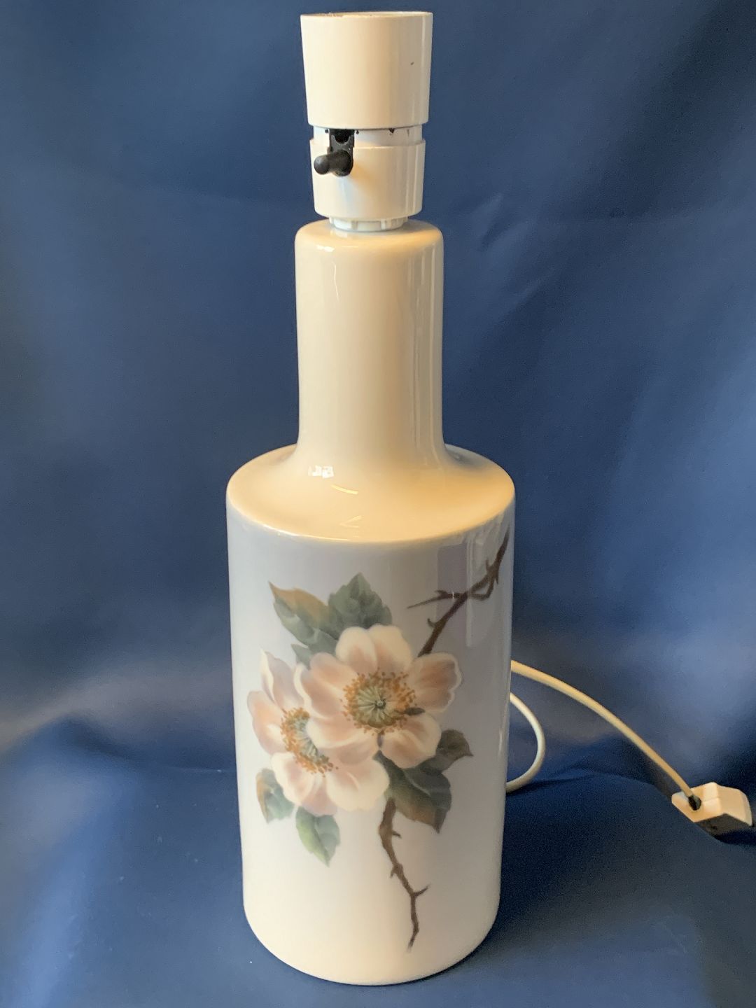 Kgl. 212-4622 Lampefod med blomsterdekoration 1. Sortering Højde 27 cm Højde 33,5 cm med fatning fra Royal Copenhagen Pæn og velholdt stand