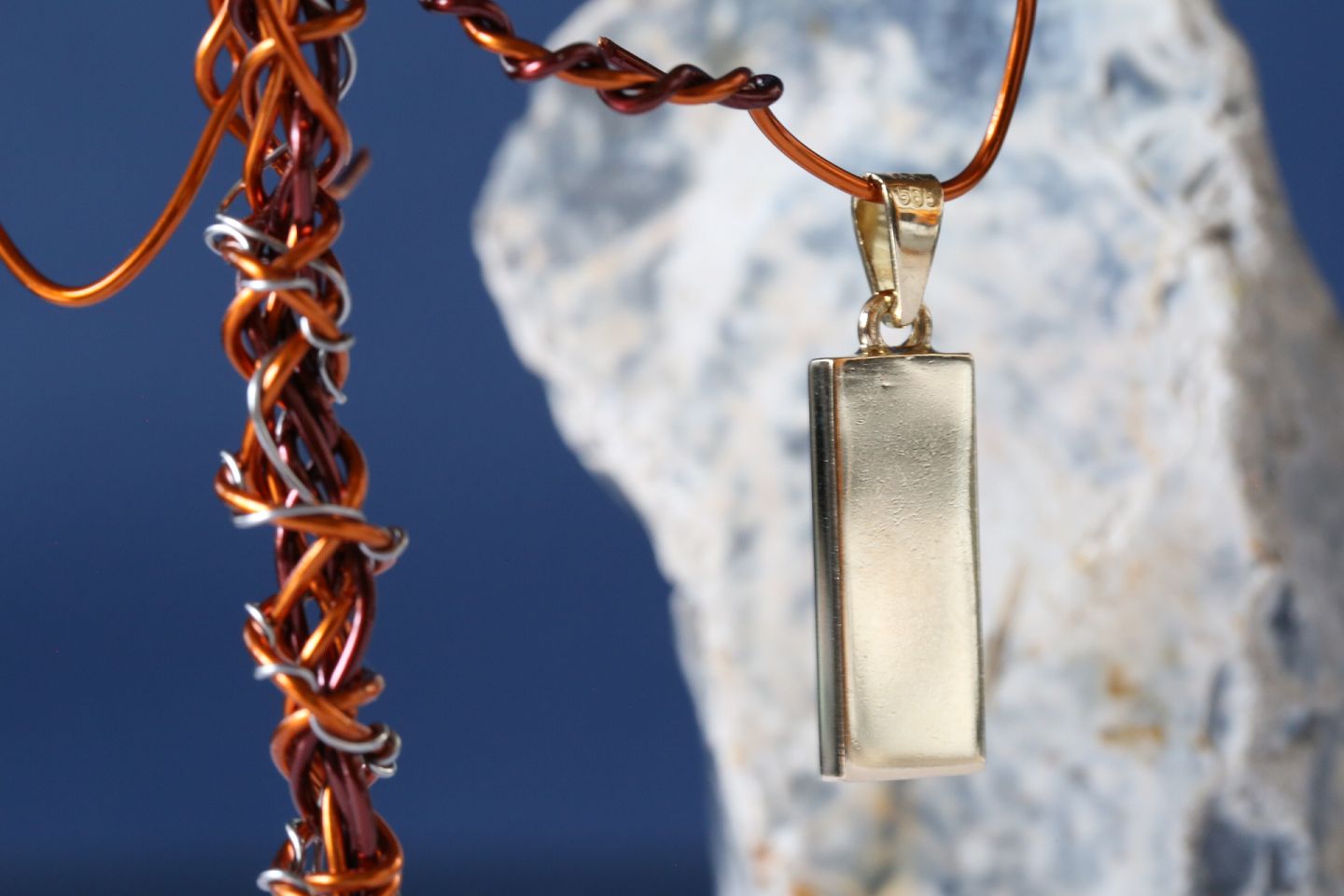 Guld vedhæng i 14 karat guld, udformet som guldbarre.