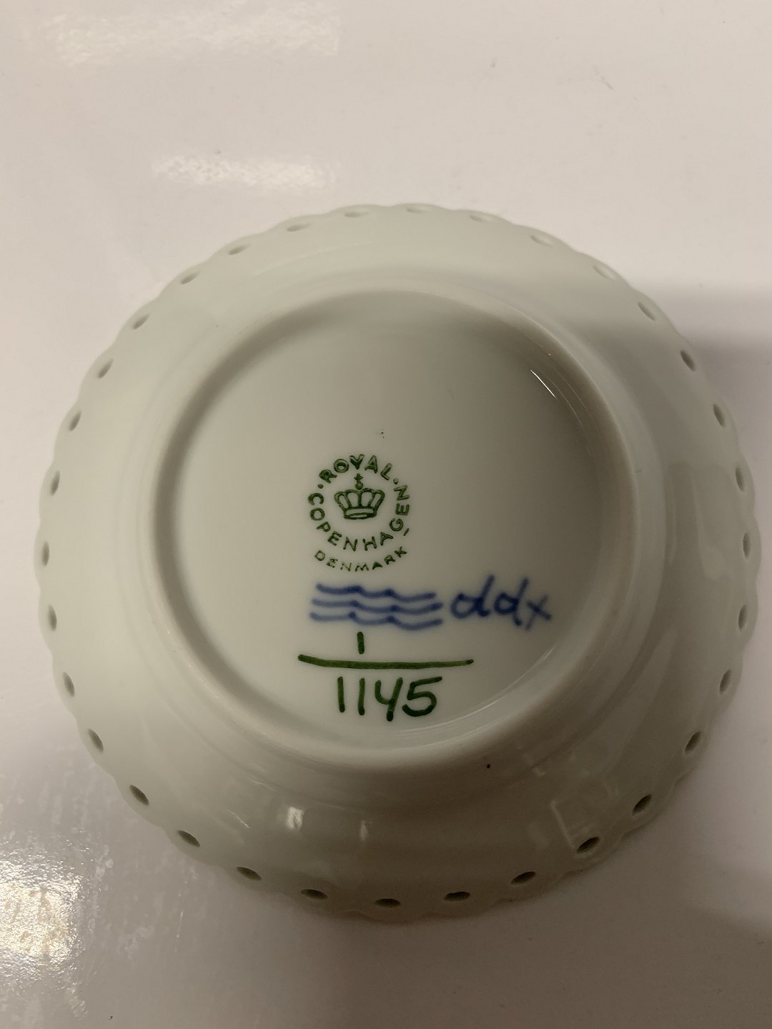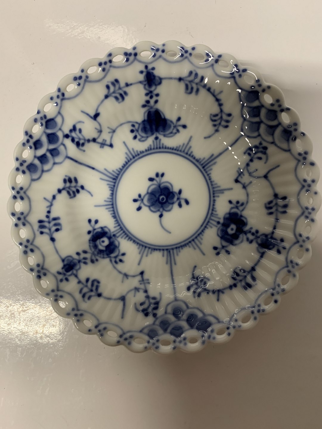 Royal Copenhagen Musselmalet Helblonde, lille asiet. Dekorationsnummer 1/1145 eller nyere nummer 512. 1. sortering. Diameter 10,9 cm. Perfekt stand uden fejl.