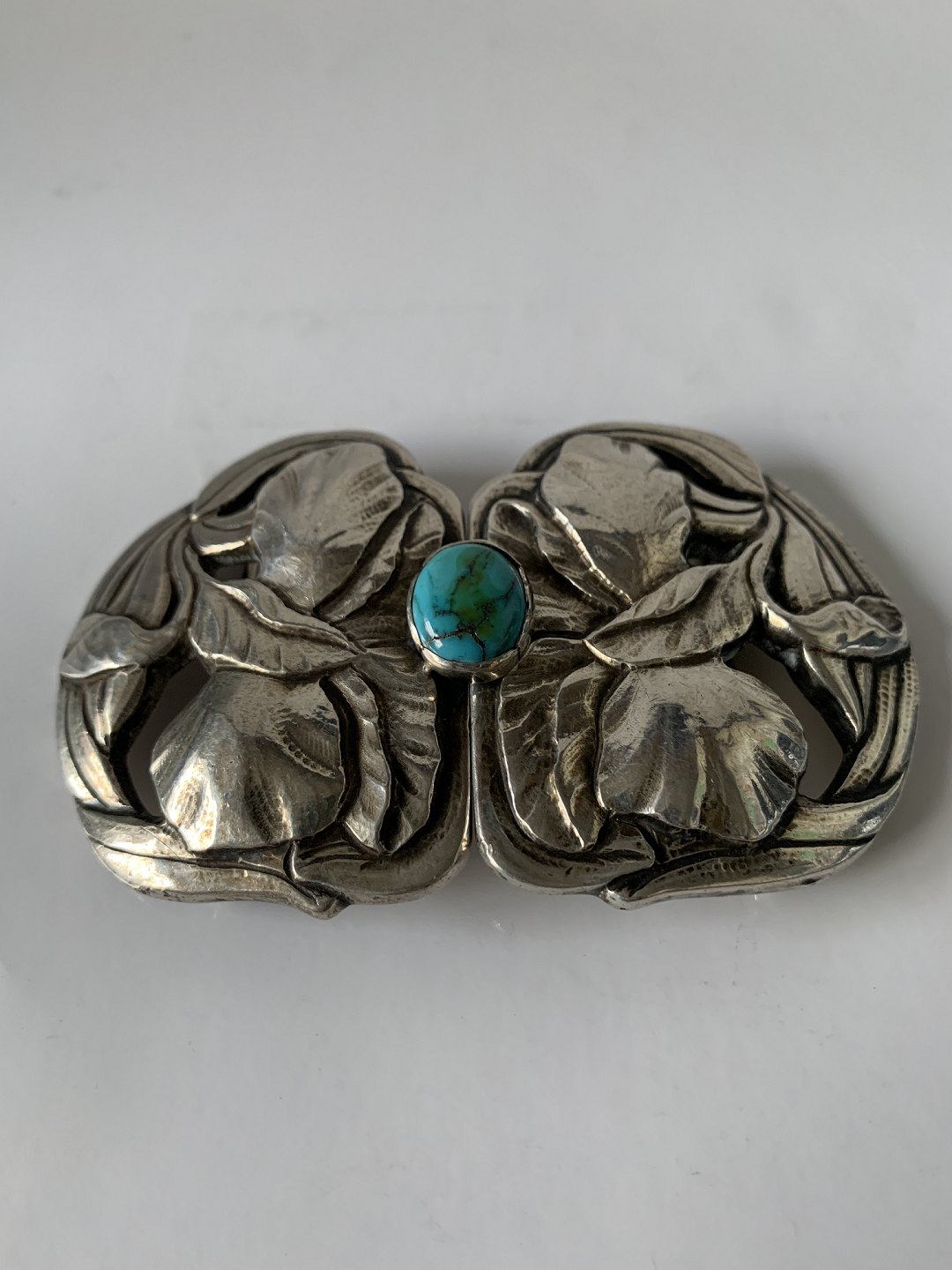 Bæltespænde i sølv med en turkis Stemplet 830S Længde 9,8 cm Brede 6,0 cm Find desuden inspiration til andre smykker hos Antikhuset her: https://www.antikhuset.net/katindex.asp?kukat=597