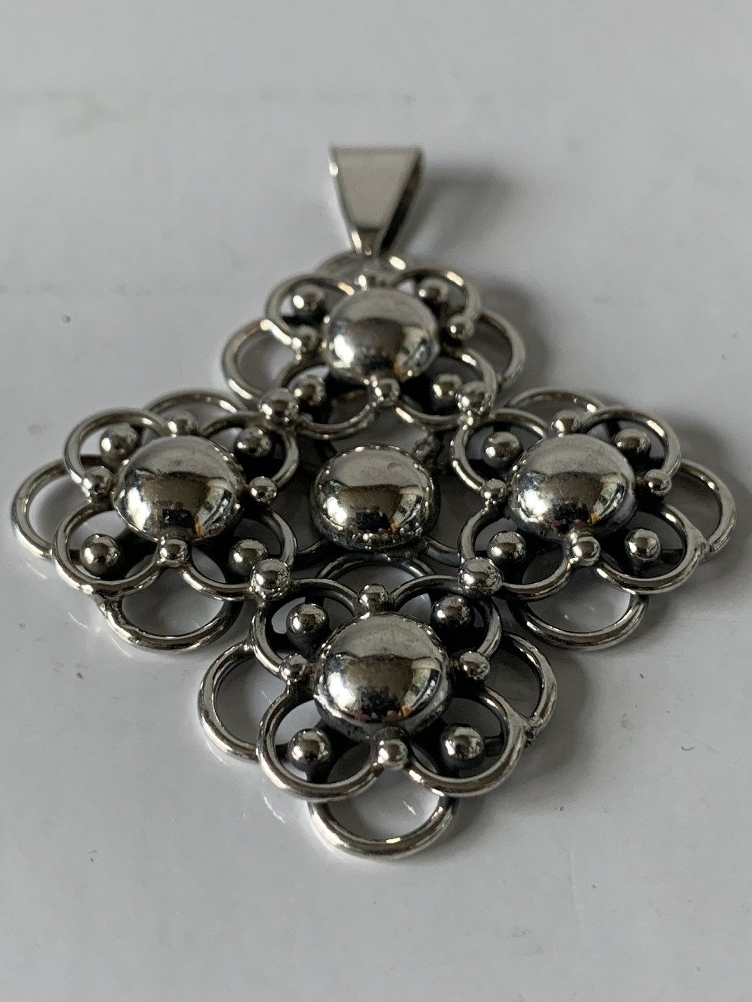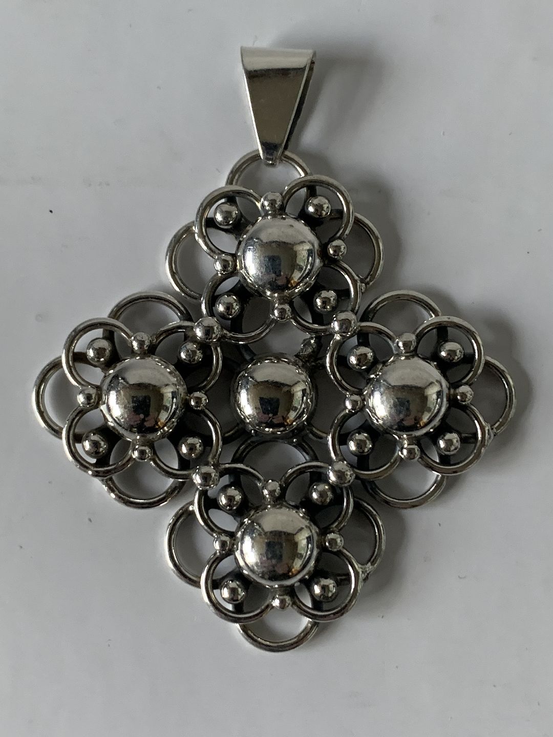 Silver Neck pendant Stamped 925S M.G&.S Length with eaves. 5.8 cm Width. 4.7 cm See also our large selection of jewelery at the antique house here: https://www.antikhuset.net/katindex.asp?kukat=597