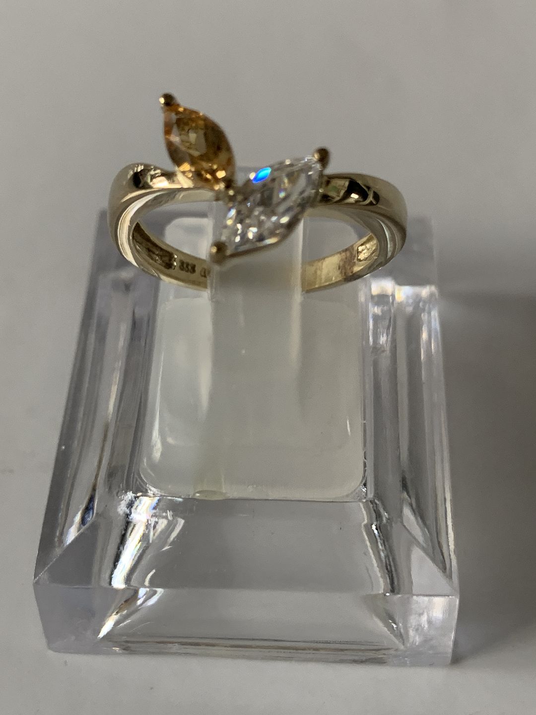 Elegant ladies' ring in 8 carat gold with yellow and clear stone