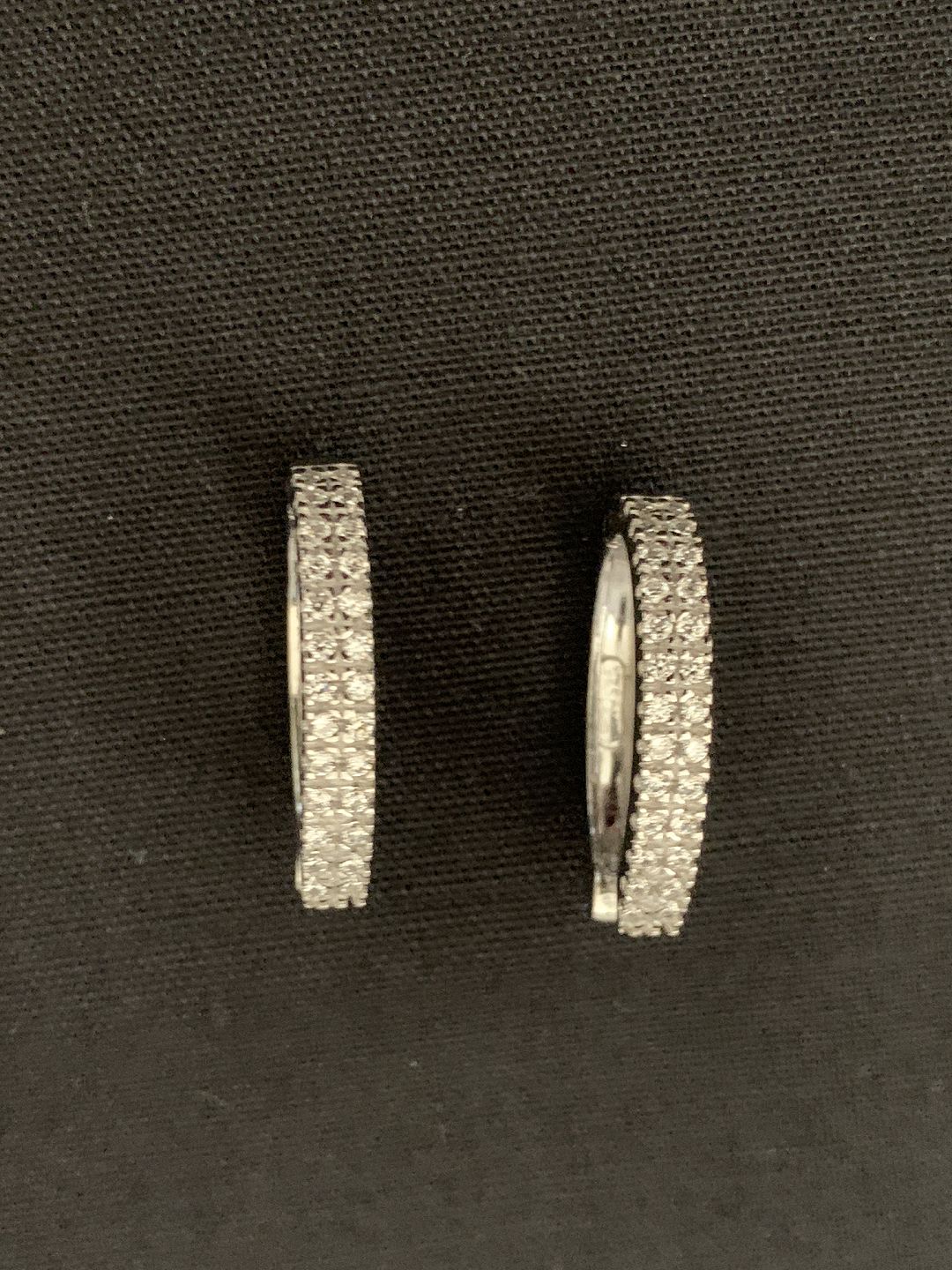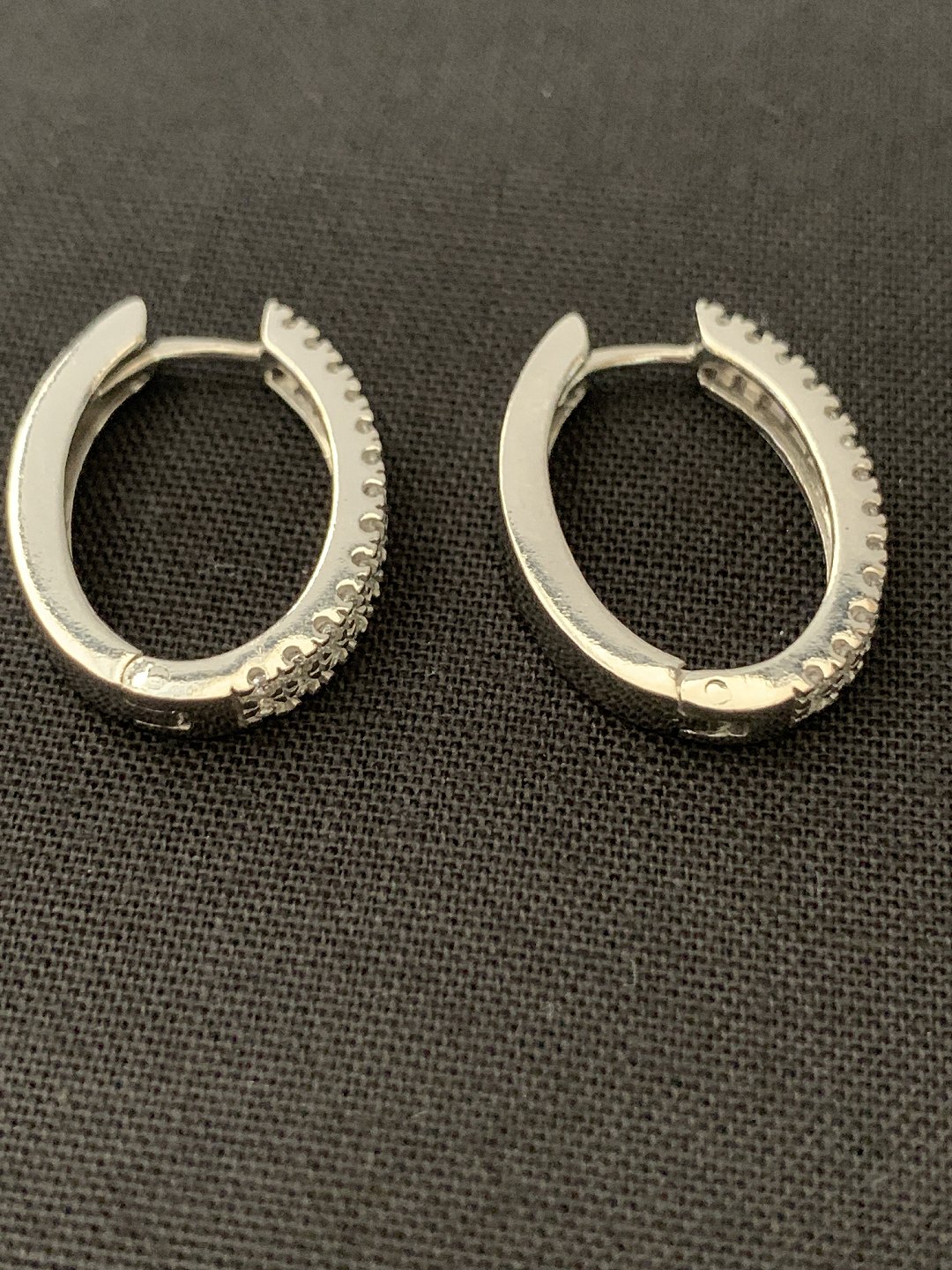 Sølv Øreringe med indlagte klare sten Stemplet 925 Højde 2,1 cm Se desuden vores store udvalg af Sølvøreringe hos antikhuset her: https://www.antikhuset.net/katindex.asp?kukat=1745