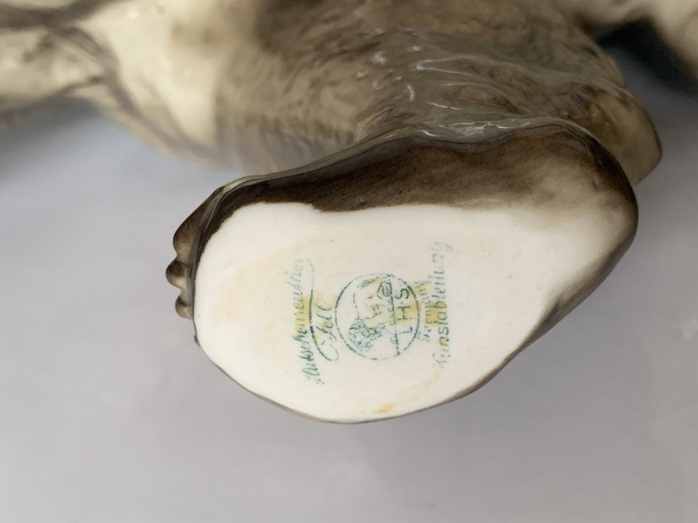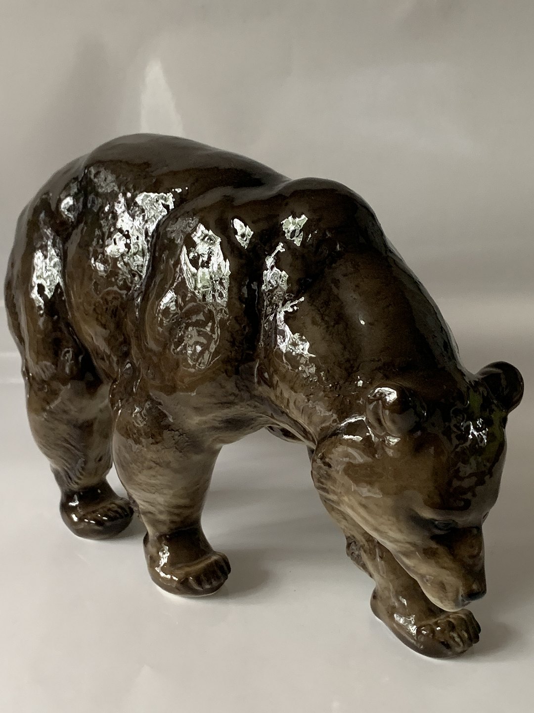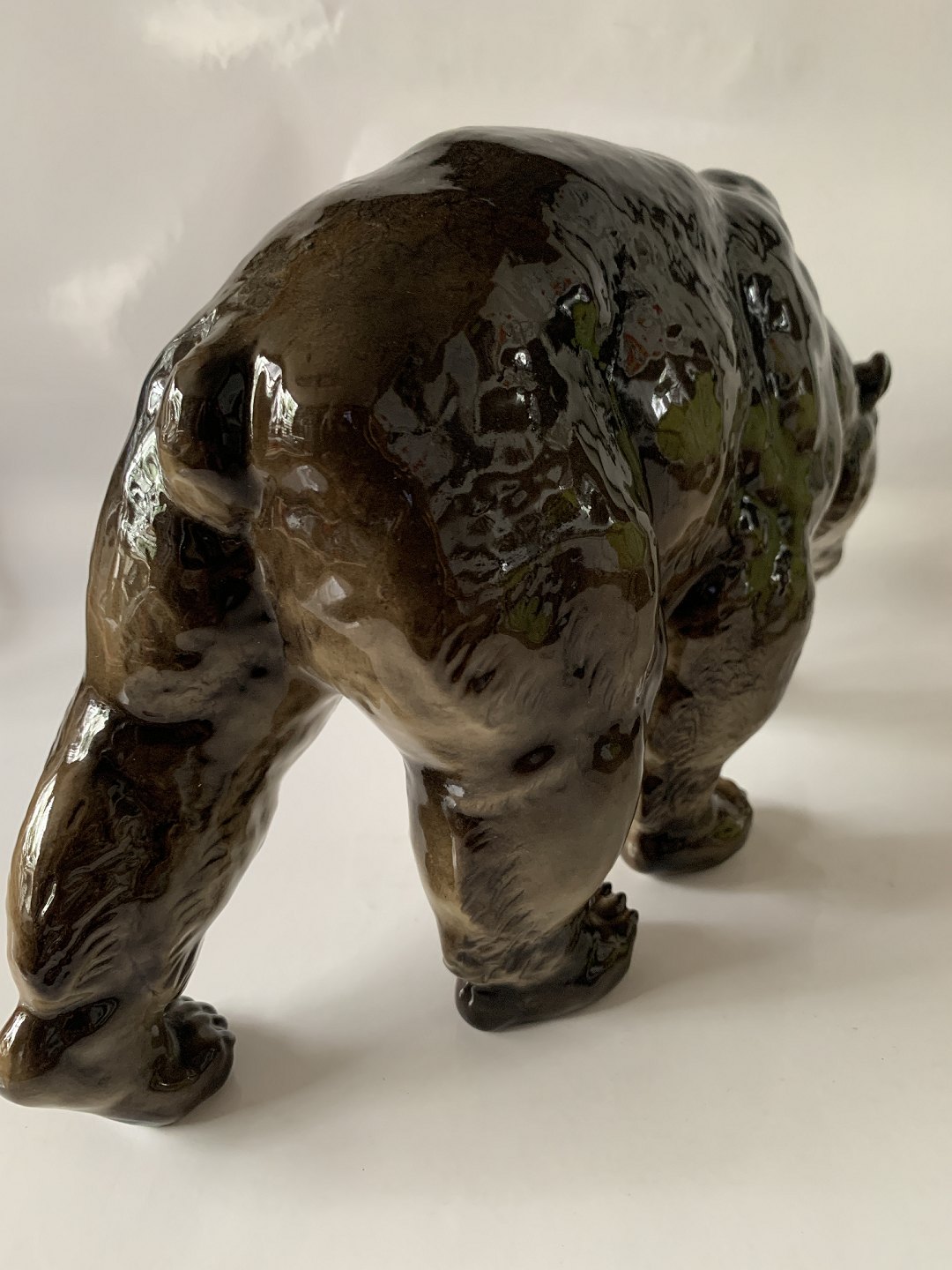 Beautiful and large porcelain figure, shaped like a bear. The bear strolls calmly, and the figure expresses an animal in peaceful gait. The many fine details in the execution make this figure something special. Use it on the bookshelf or desk, where it can liven up your home.