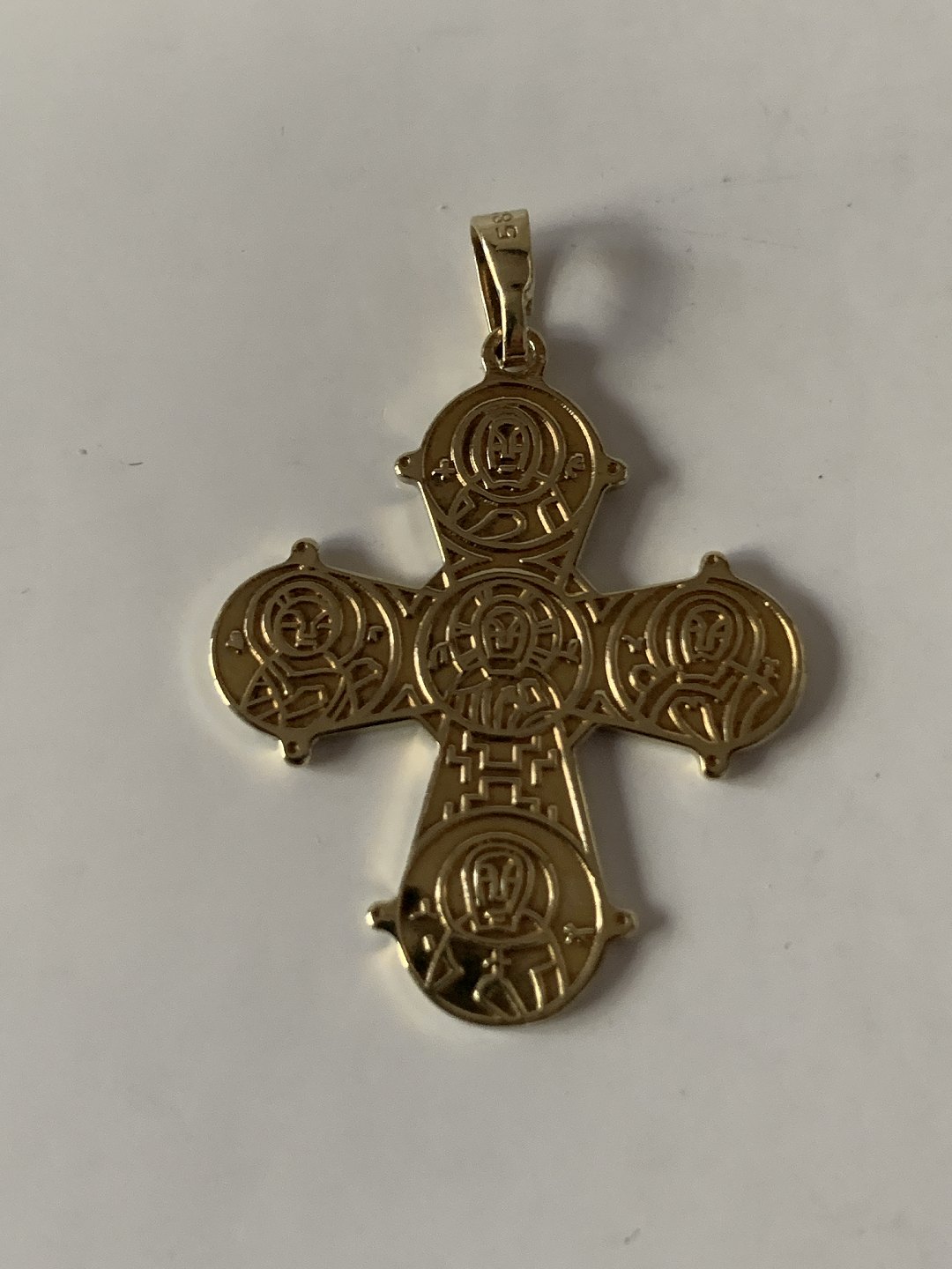 Daymark cross with the suffering Christ on the front, and the 5 "big" ones on the back.