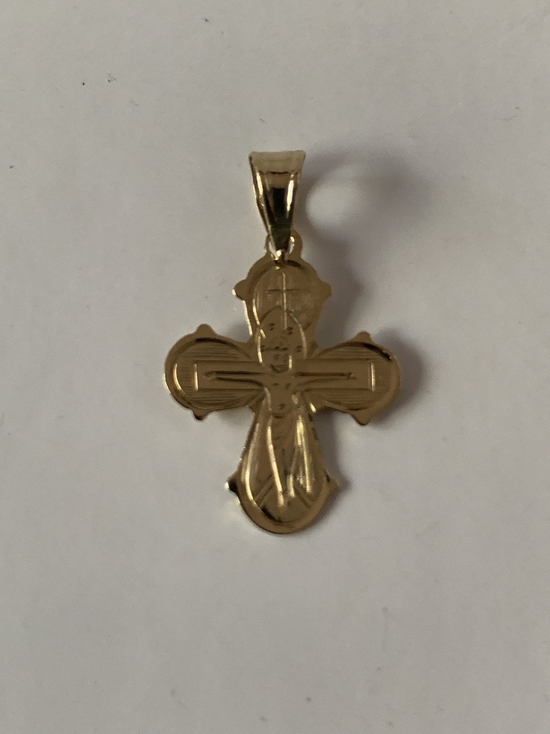 Klassisk Dagmarkors med den lidende Kristus på forsiden, og de 5 store på bagsiden. Dagmarkorset er et traditionelt smykke, der ofte gives som dåbs- eller konfirmationsgave.