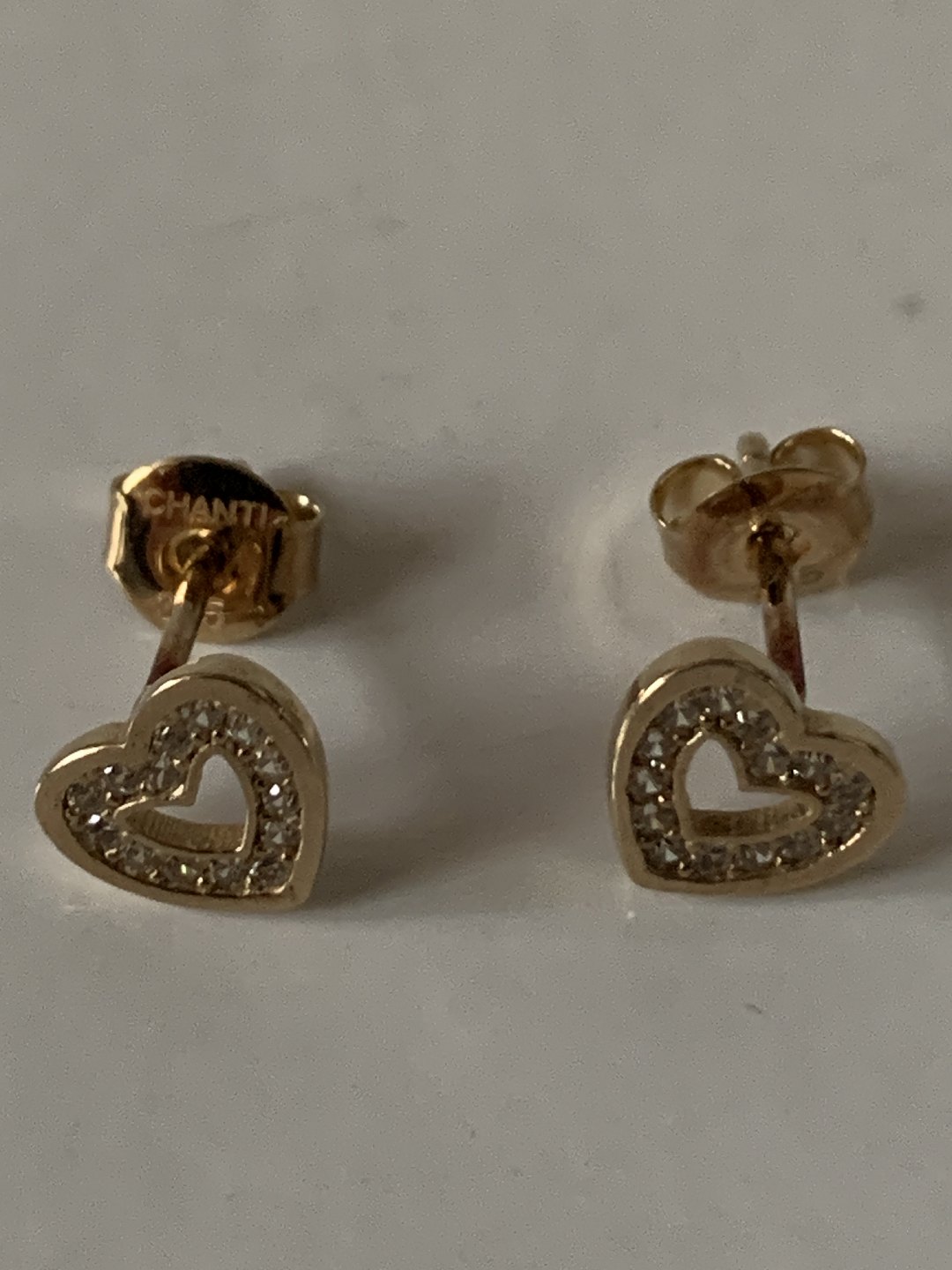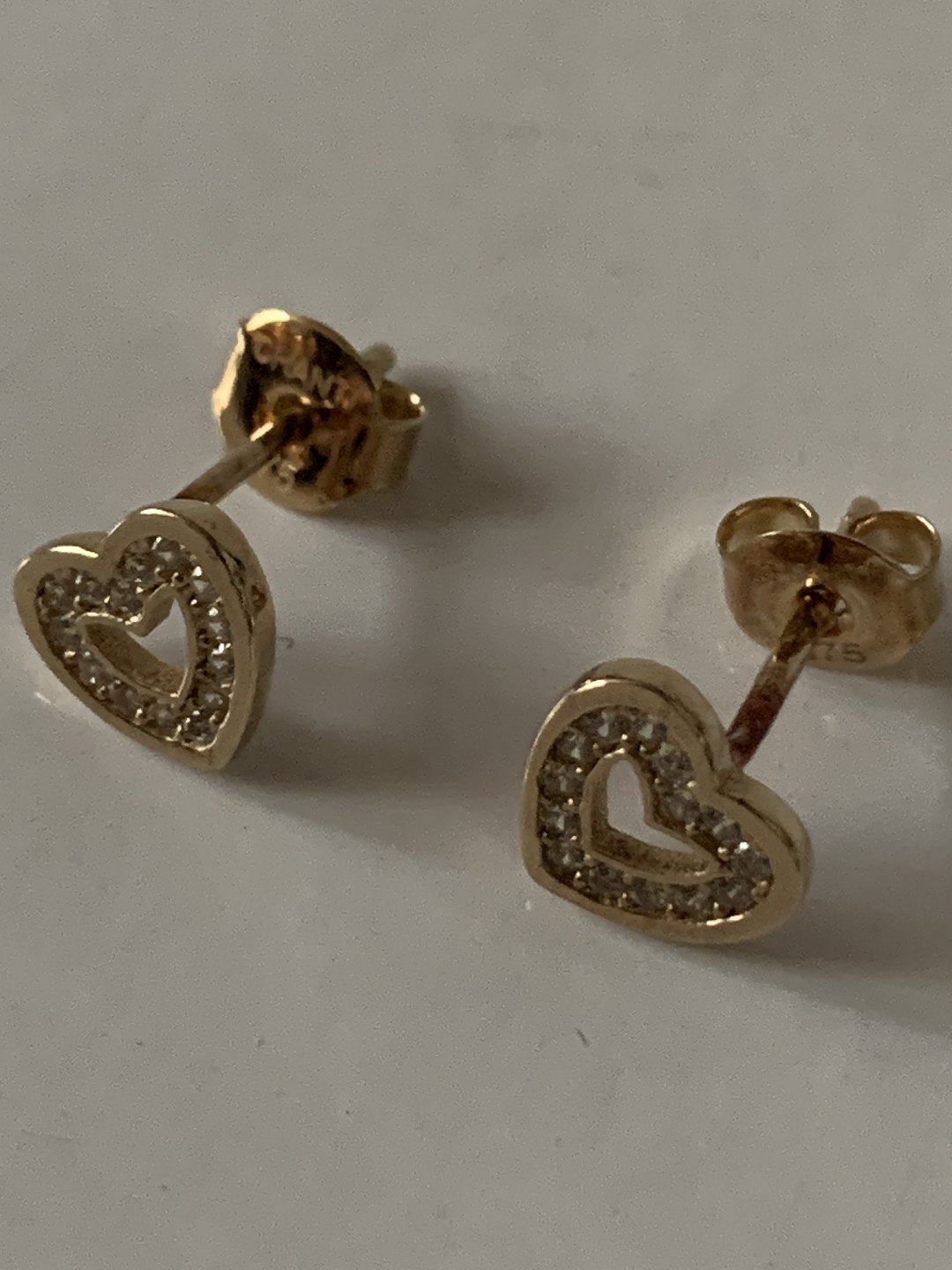 Beautiful heart studs in 9 carat gold, with embedded zircons. The ear studs are small and discreet, yet elegant in the earlobe.