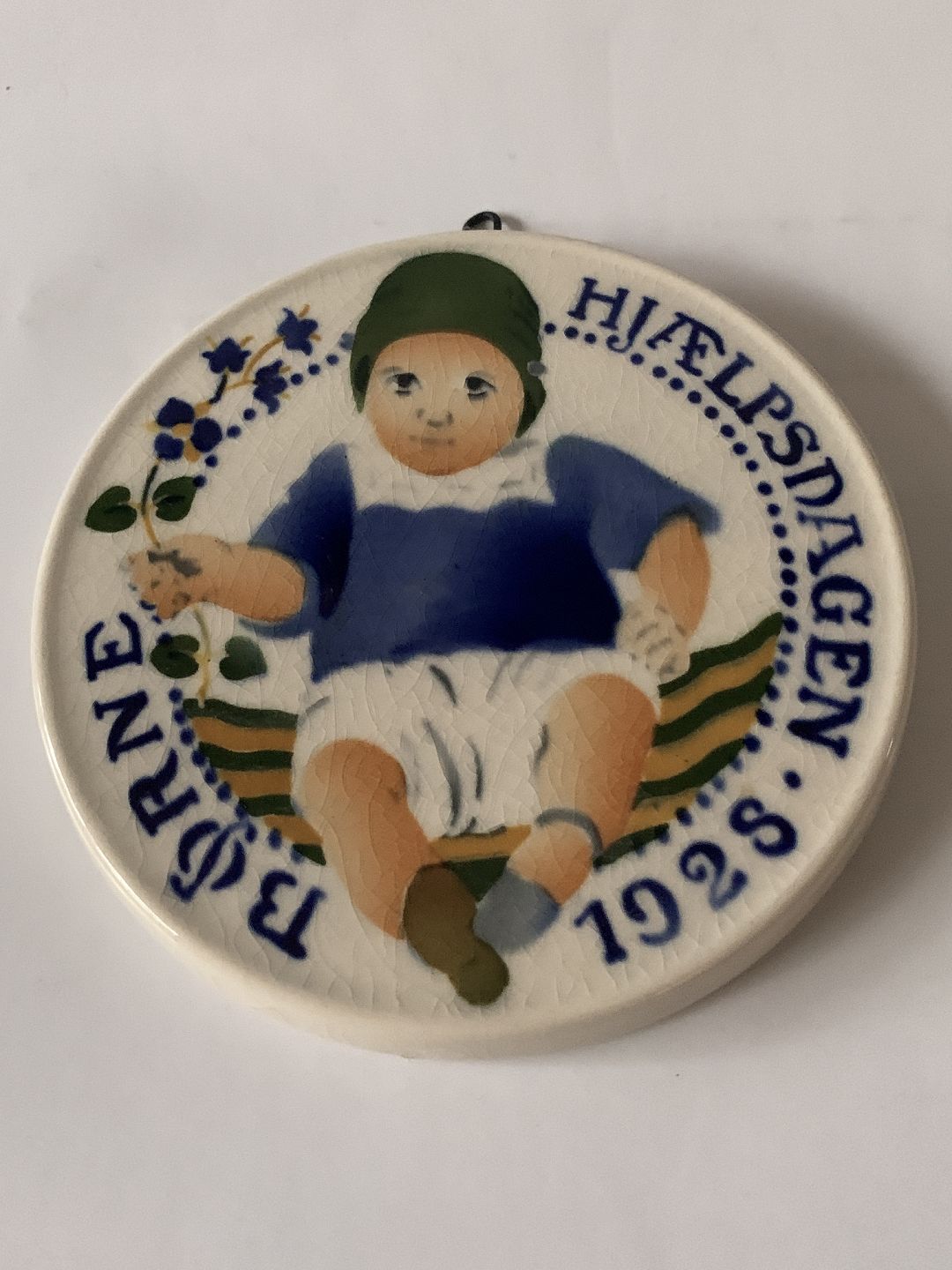 Aluminia Children's aid plates in earthenware. Children's Aid Day 1928. Year 1928. Diameter: 8.5 cm. Nice, flawless condition. See also our large selection of Aluminia here: https://www.antikhuset.net/katindex.asp?kukat=606