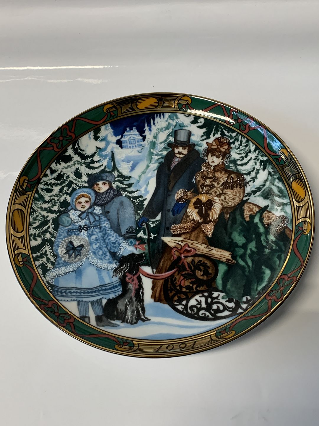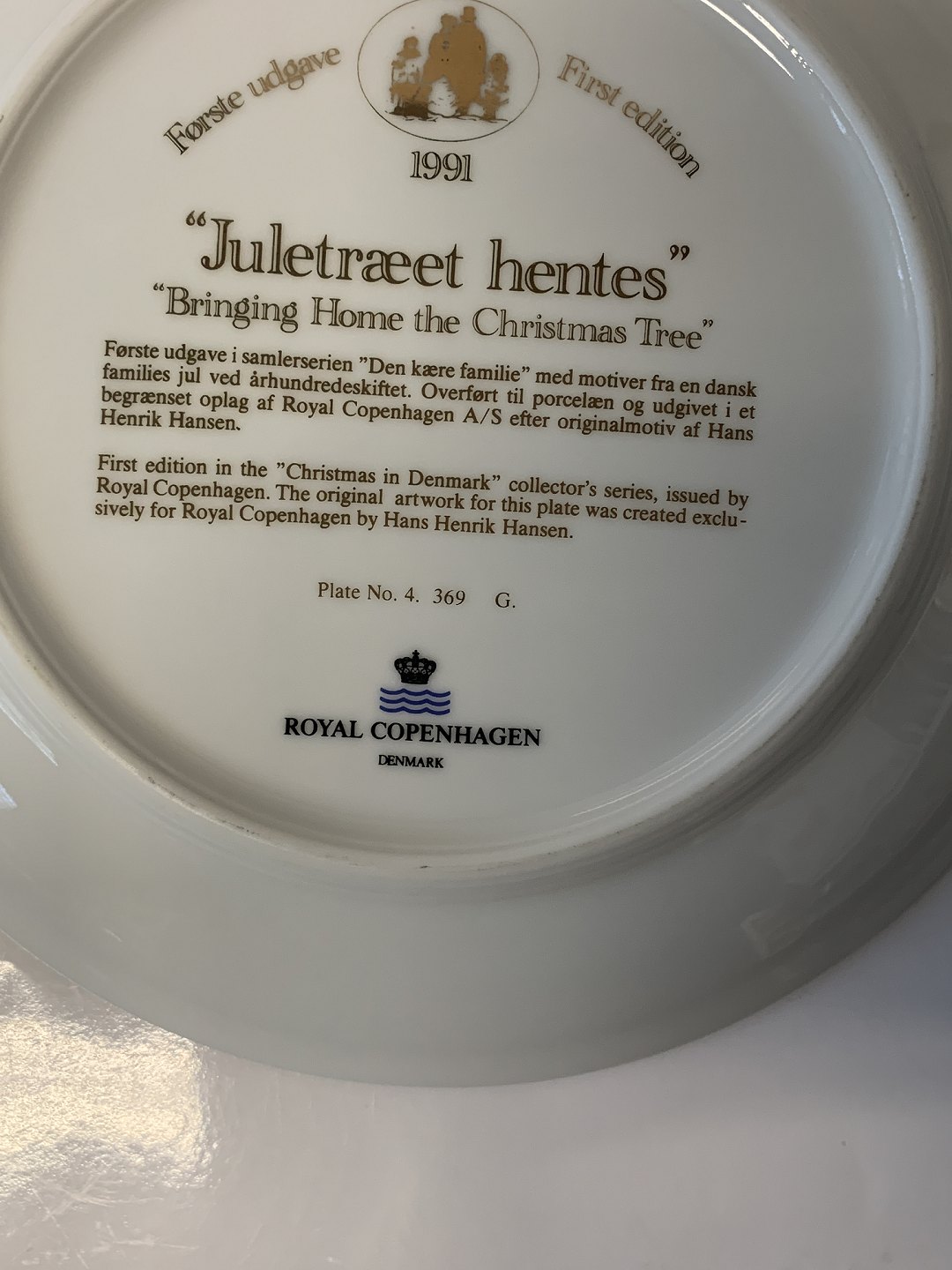 Royal Plate "Den Kære Familie" The Christmas tree is fetched, 1991 Plate No. 4. 369 G. Diameter 21 cm. 1. Sorting. Beautiful and well maintained condition