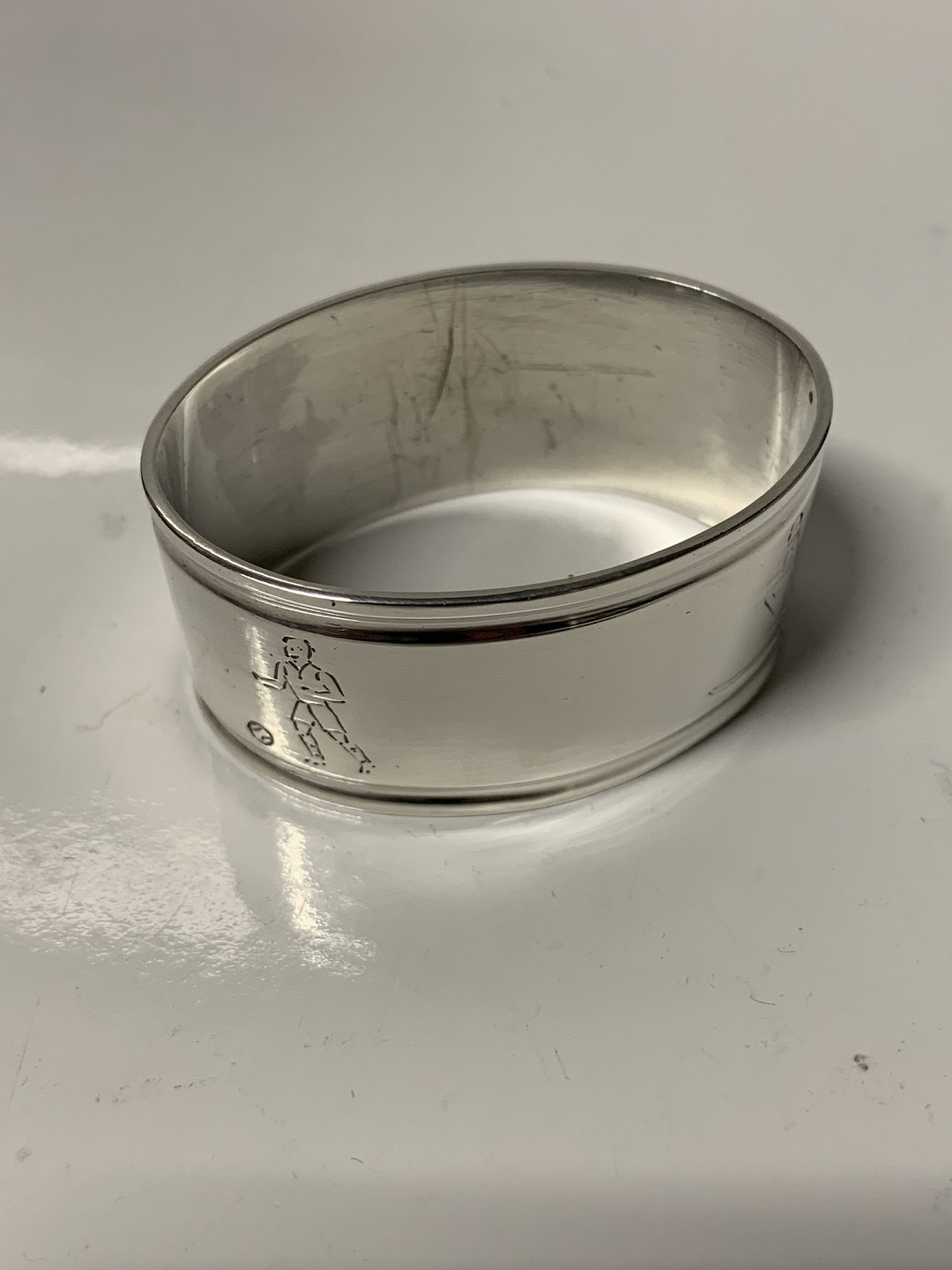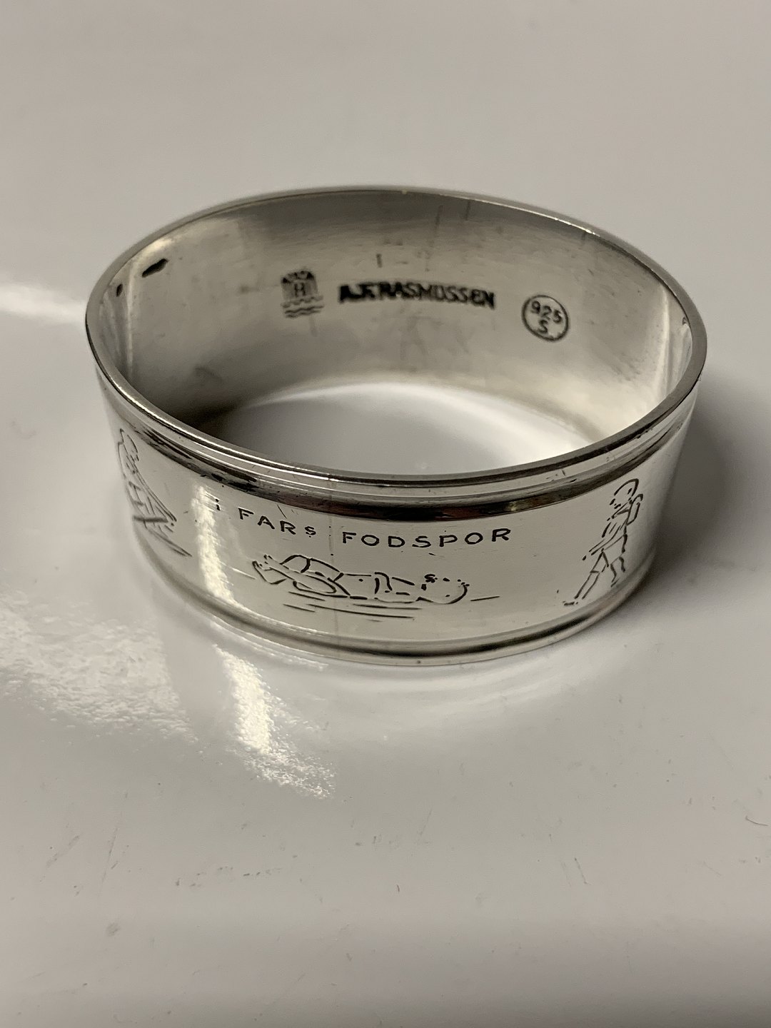 Napkin ring Sterling silver. Stamp: 925S Size: 2.2 x ø 4.5 cm. Text: In the Father's Footsteps. Well-kept condition. Polished and packed in bag.