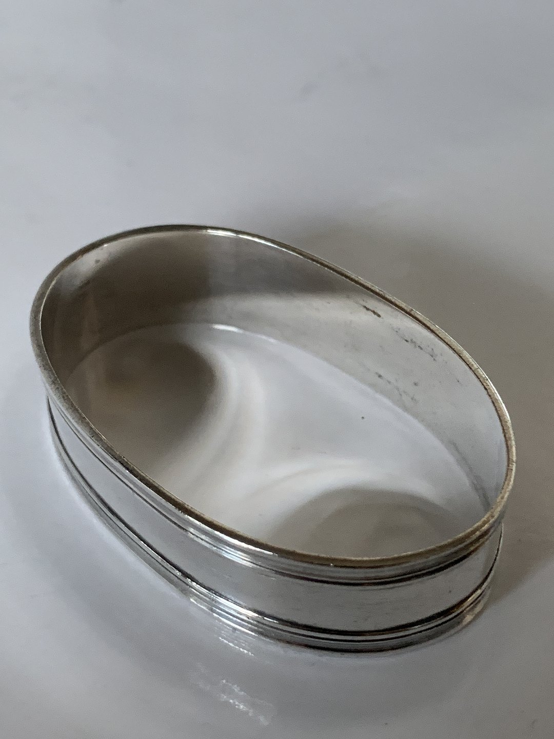 Servietring Sølv. Stemplet: 830S. Størrelse: 1,3 x ø 5,2 cm. Velholdt stand. Poleret og pakket i pose.