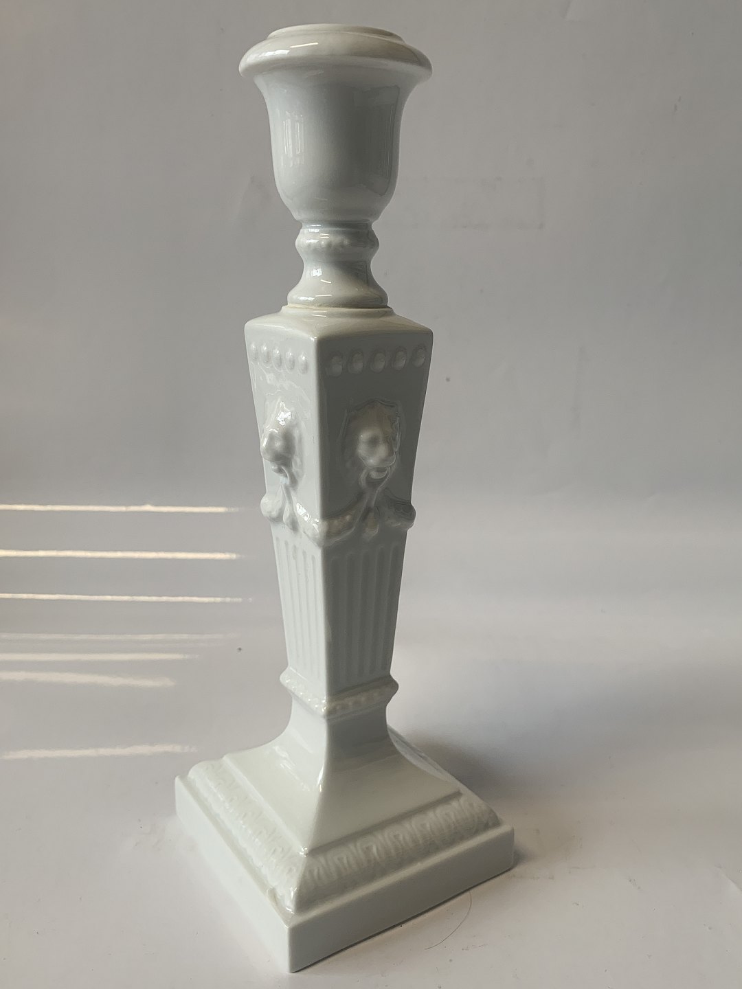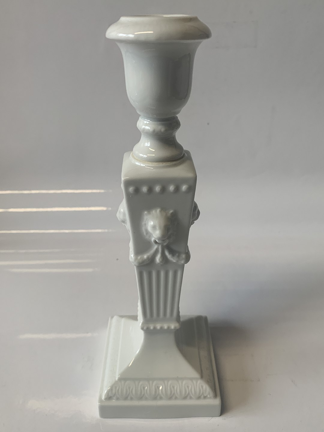 Royal Copenhagen White Blue Fluted Lion Candle Holder 1st Sorting. Height: 23 cm. Nice and well-maintained condition