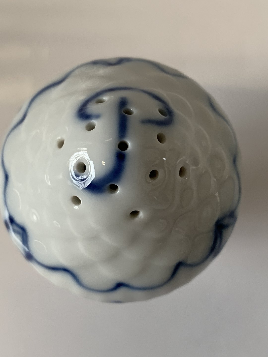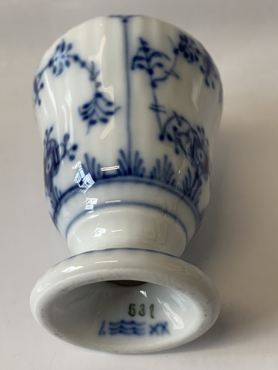 Royal Copenhagen Musselmalet Riflet peberbøsse. Dekorationsnummer 1/467 eller nyt nummer 531. 1. sortering. Højde 8,2 cm. Perfekt stand uden fejl.
