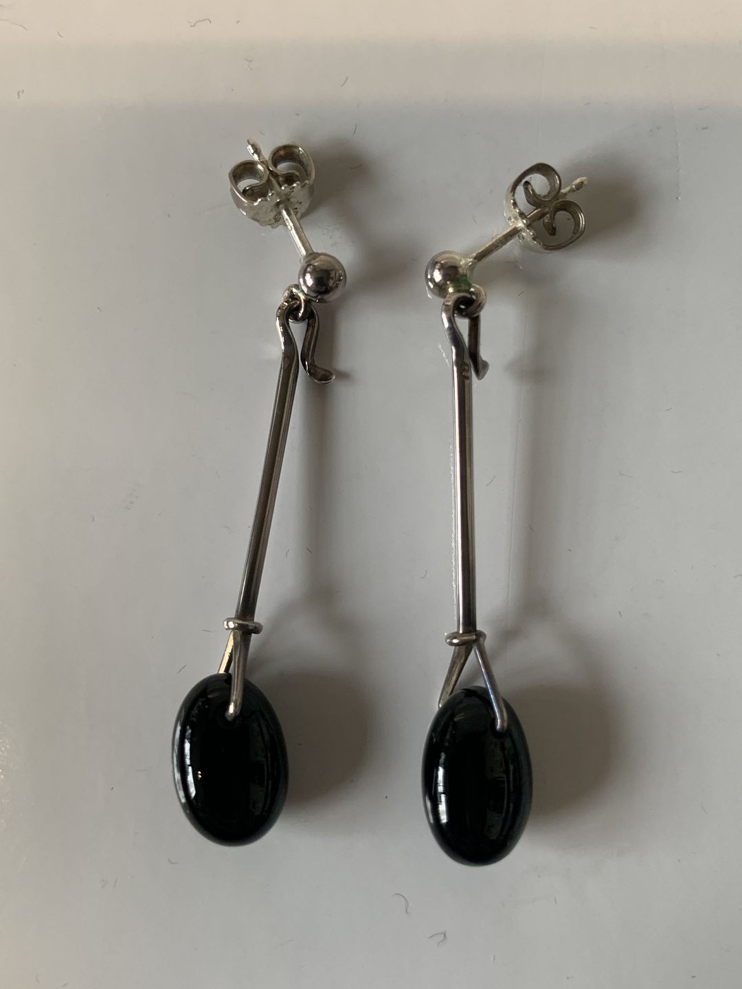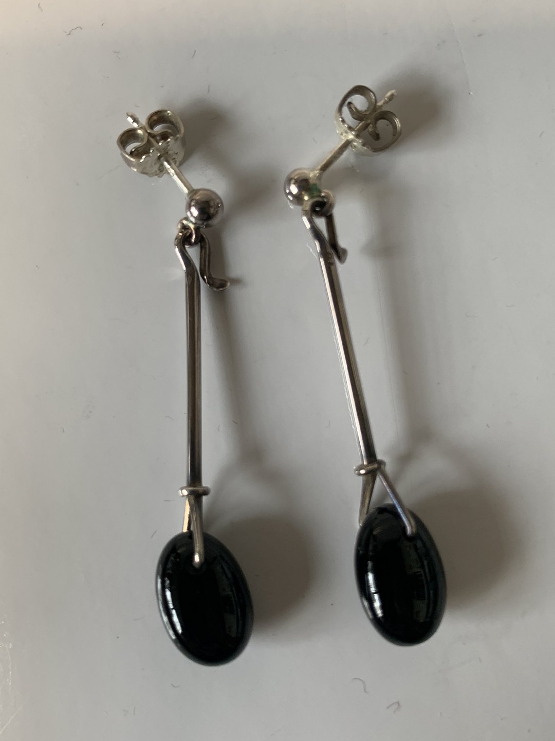 Georg Jensen, Dew Drop Earrings with black agate, sterling silver.
