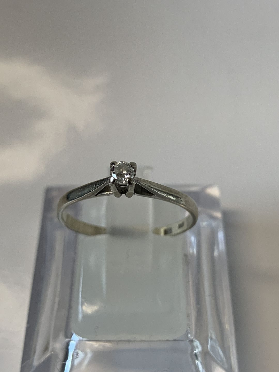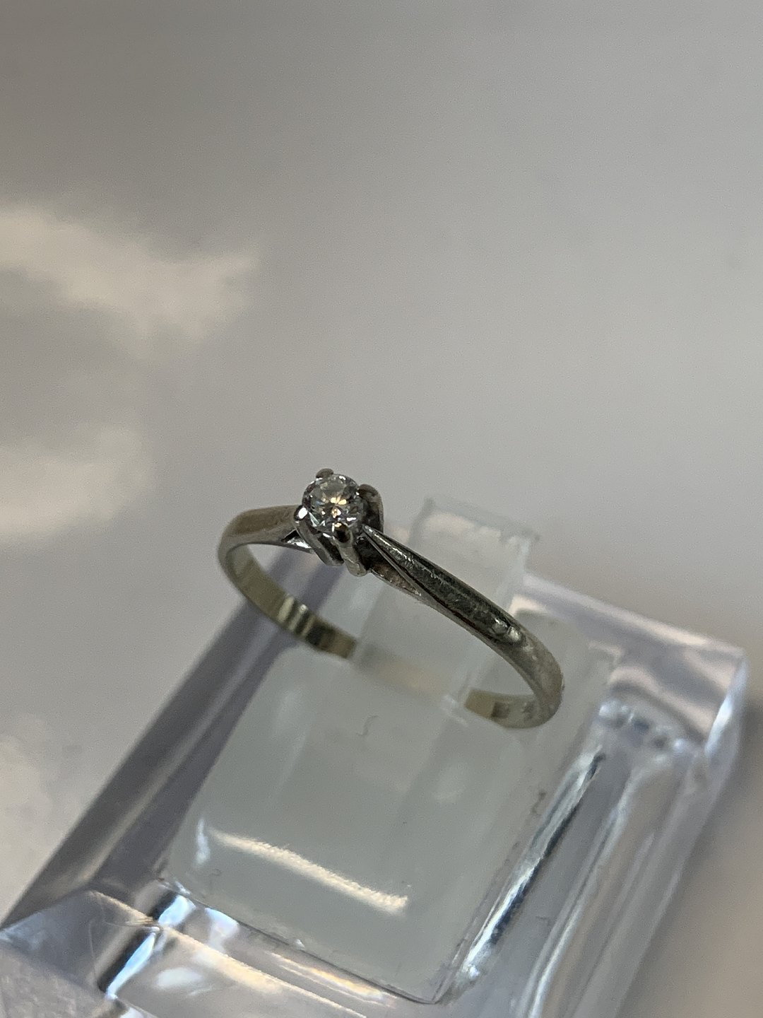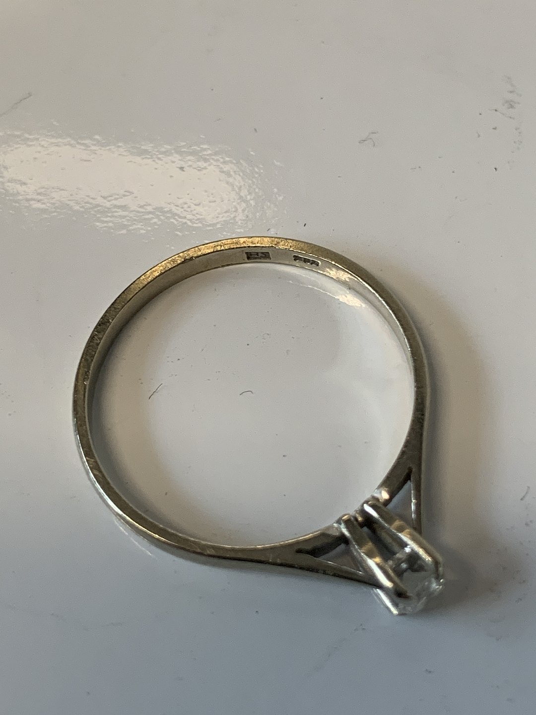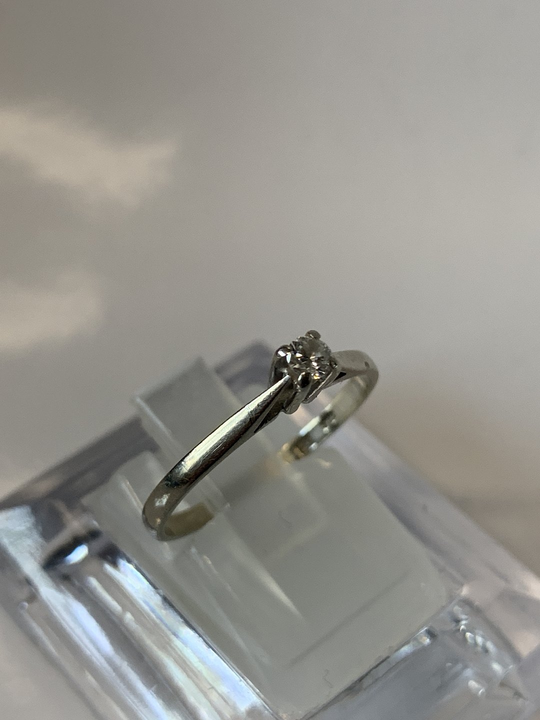 Guldring med Brillant 14 Karat, Hvidguld Stemplet: HS 585. Størrelse: 54, -17,19 mm. Flot og velholdt stand. Varen findes ikke fysisk i butikken. Kontakt os for fremvisning.