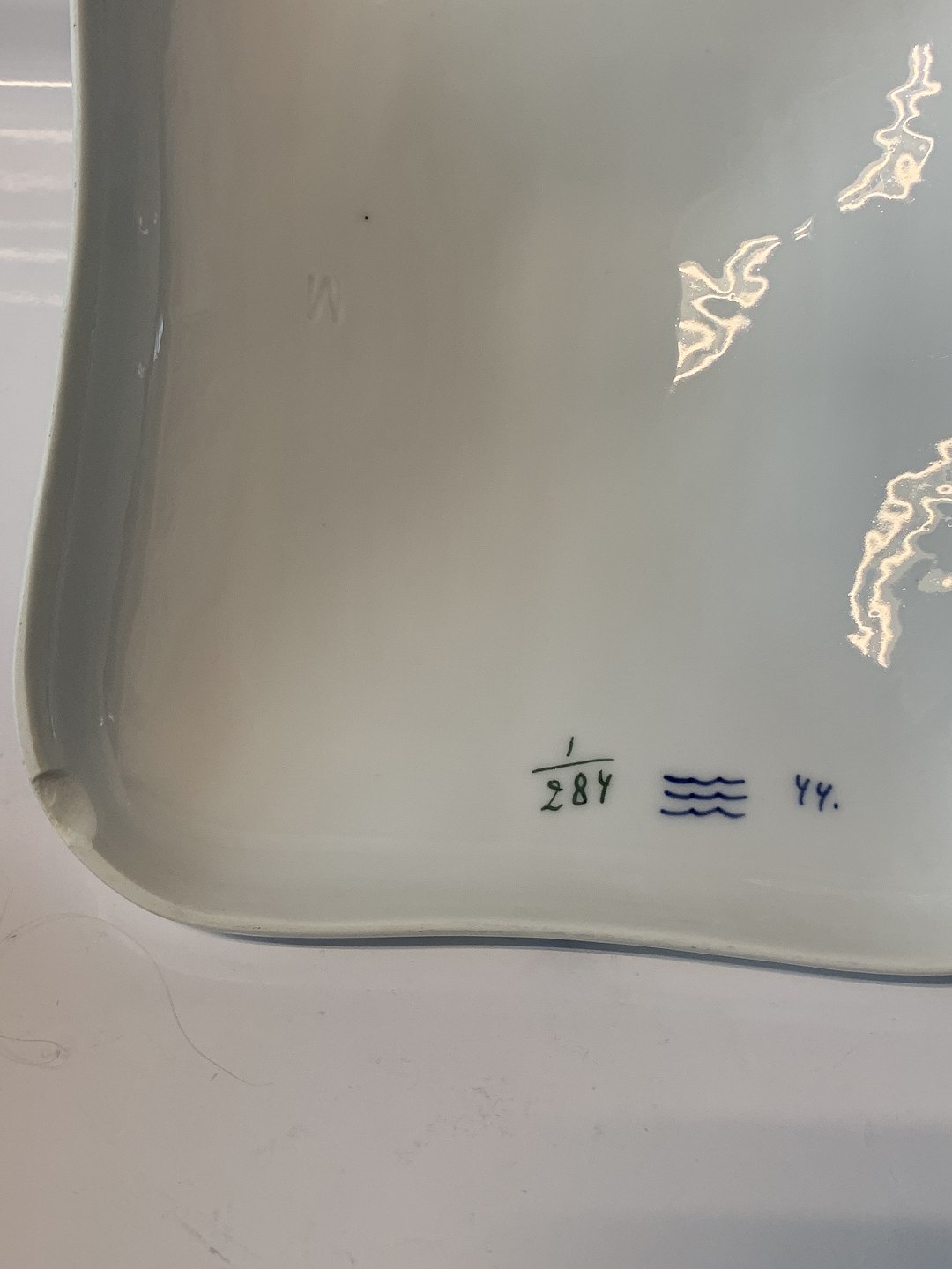 Royal Copenhagen Musselmalet Riflet, sjældent firkantet lågfad.