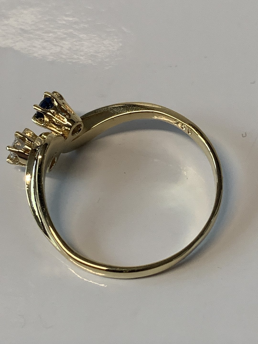 Women's ring with diamond and a blue sapphire, in 18 carat gold.