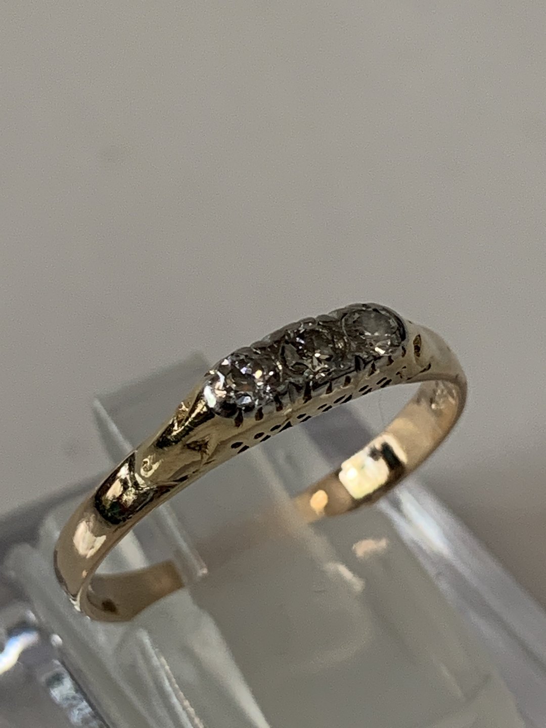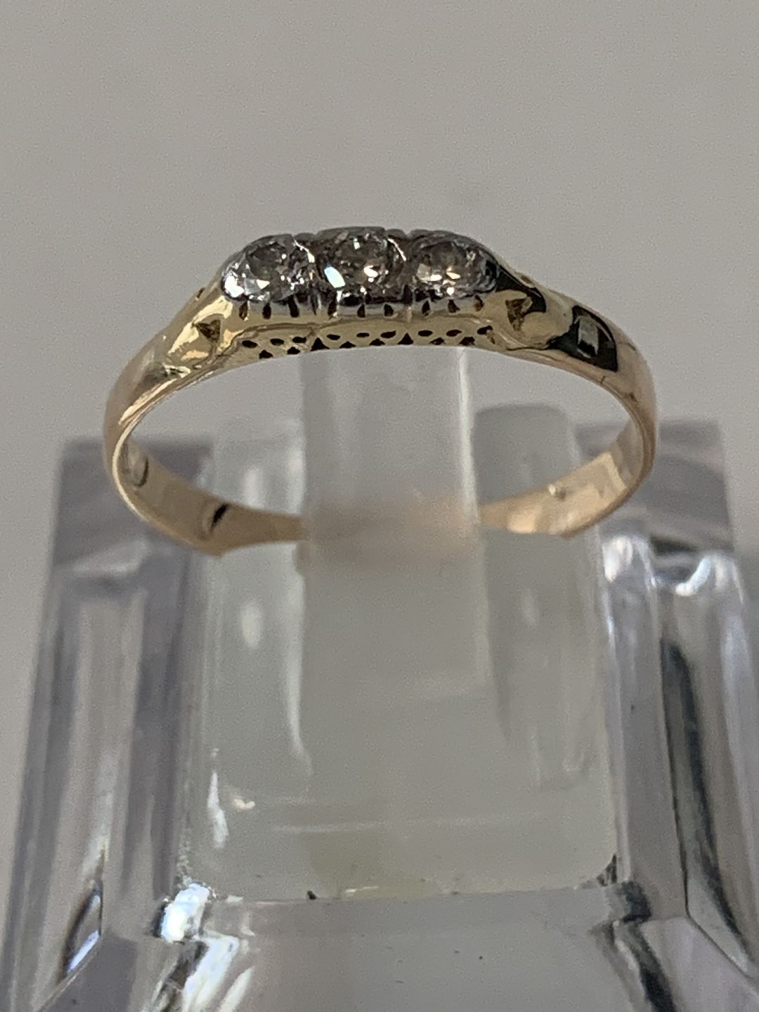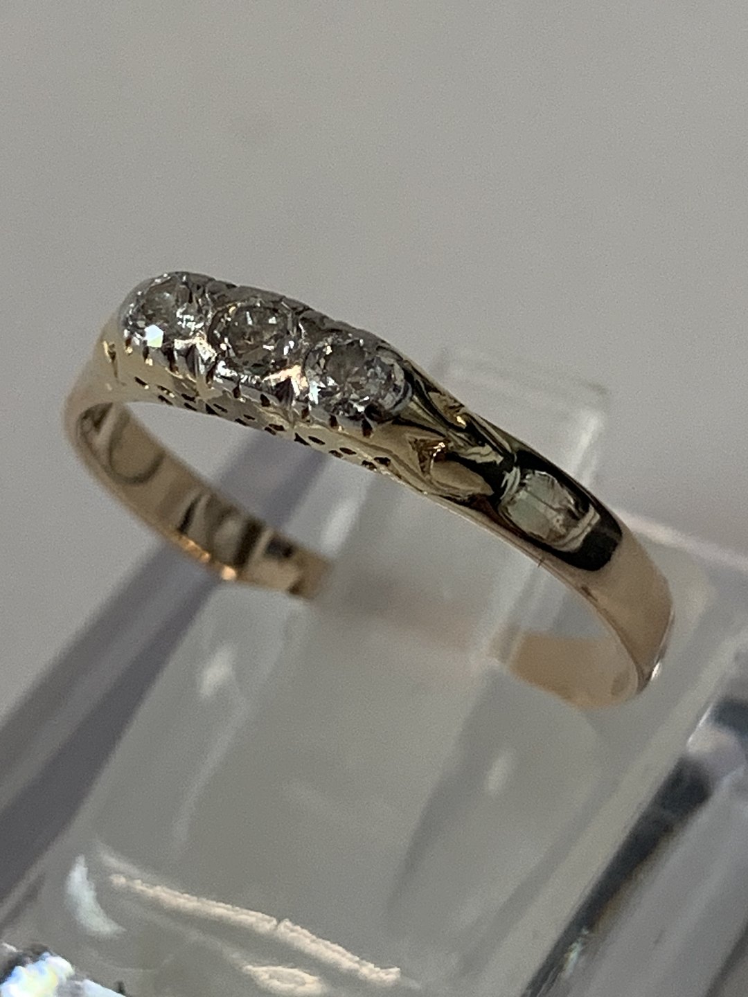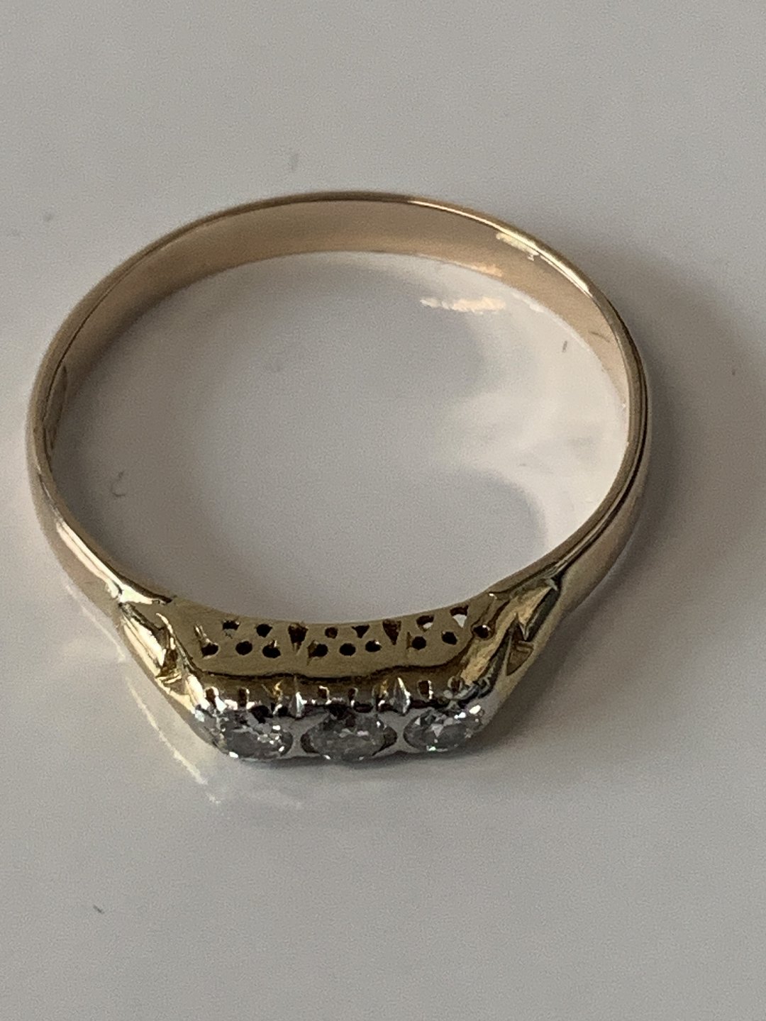 Smuk og stilren guldring i 14 karat guld, med 3 diamanter.