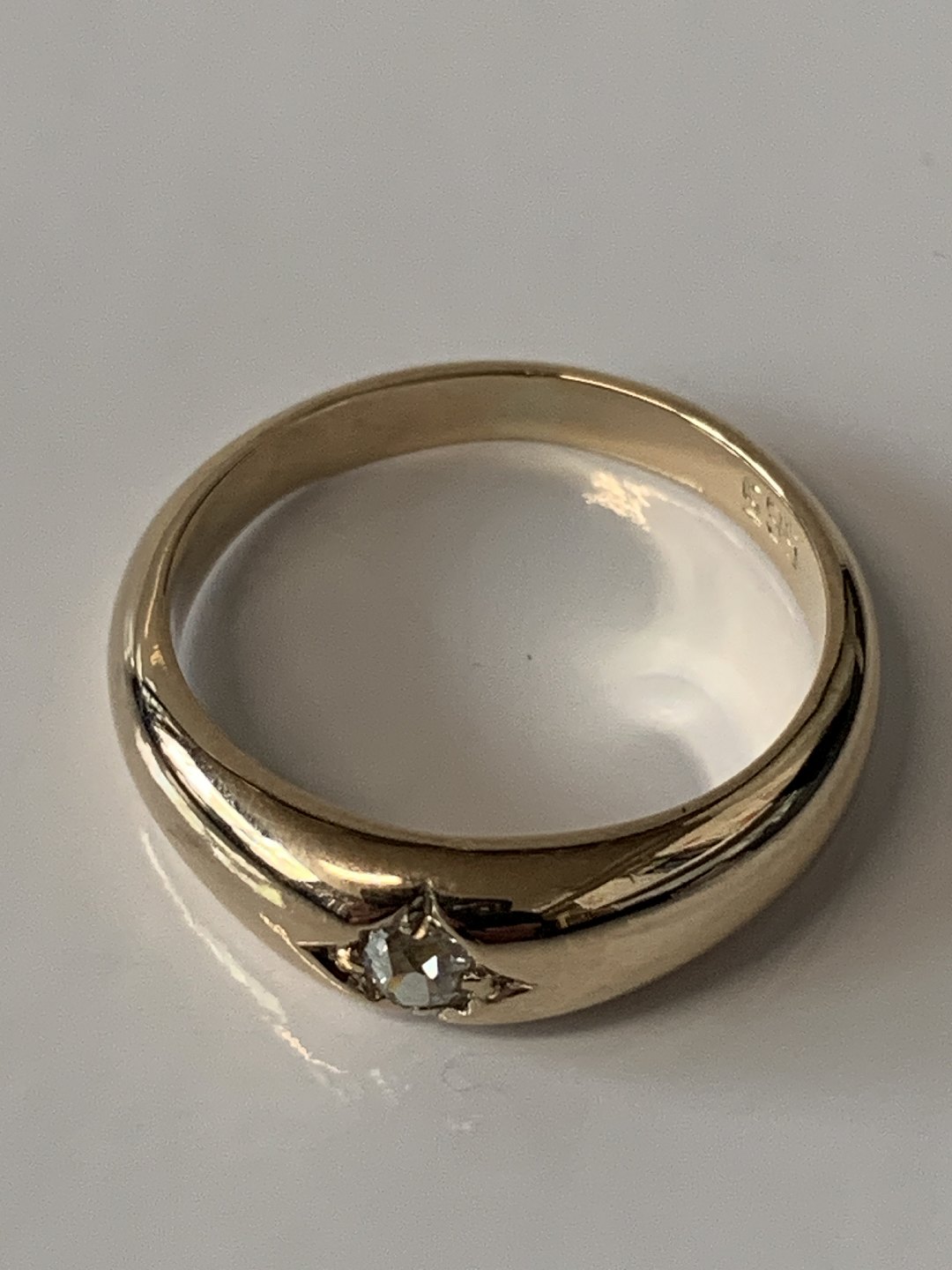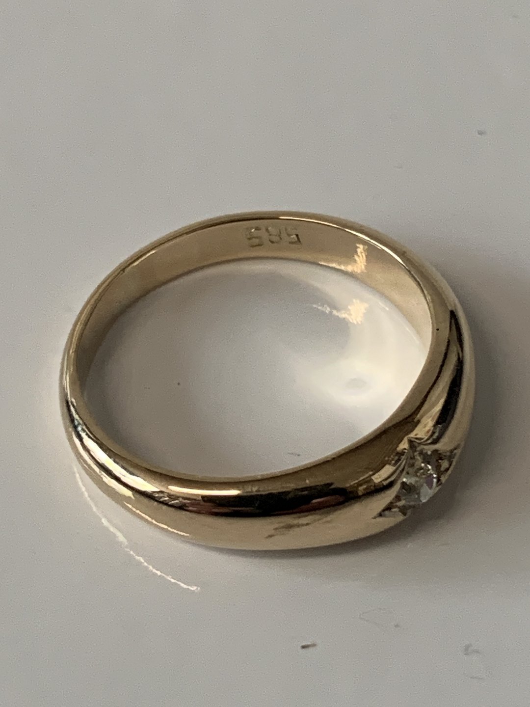 Smuk og stilren guldring i 14 karat guld, med en diamant.