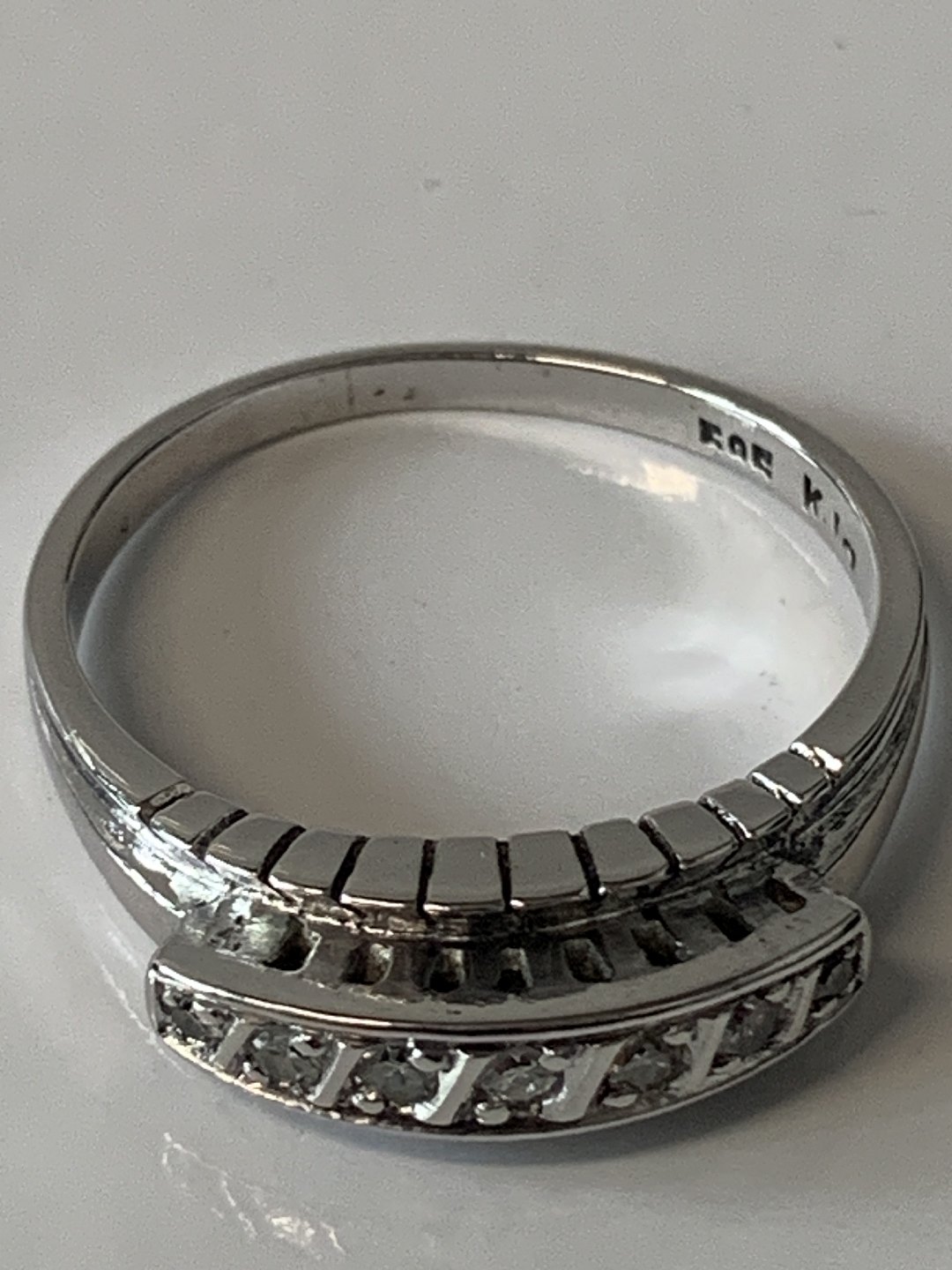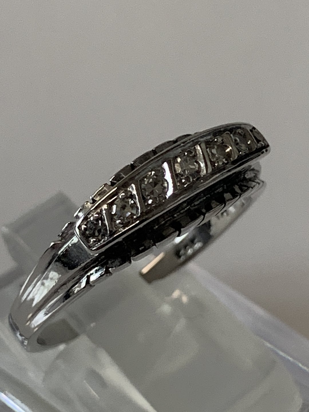 Diamond ring in 14 carat white gold with a shiny surface and 7 brilliant-cut diamonds