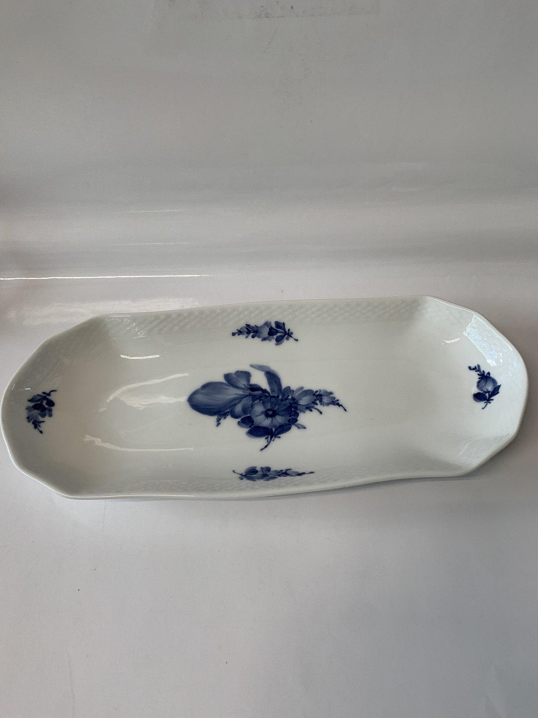 Royal Copenhagen Blå Blomst Flettet, Aflangt Sellerifad, Brødfad Dekorationsnummer 10/8072. Længde 36 cm. 2 sortering Flot og velholdt stand
