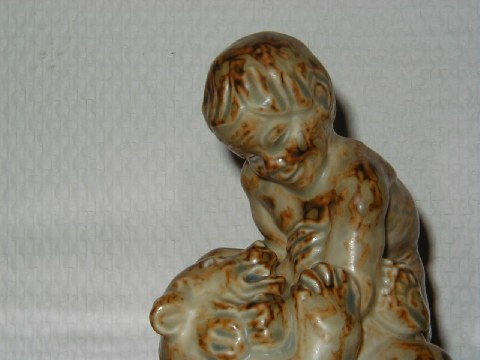 Sjælden Kongelig Figur af Knud Kyhn: Dreng/Pan med Bjørn