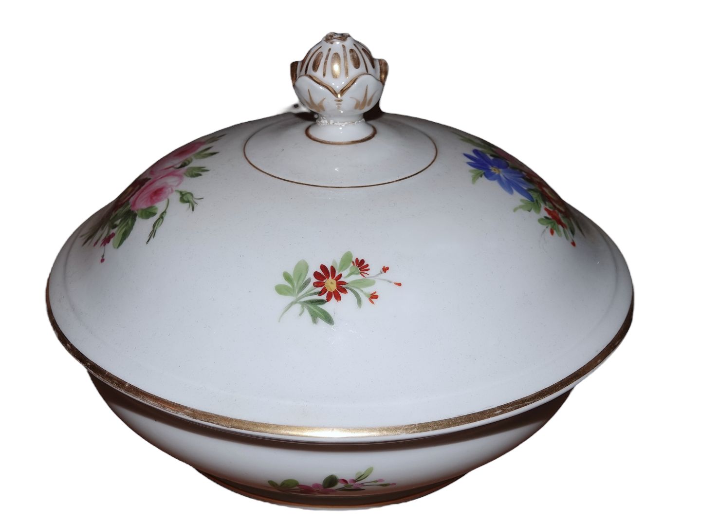 Lidded bowl with bouquets of flowers from 1820-1850