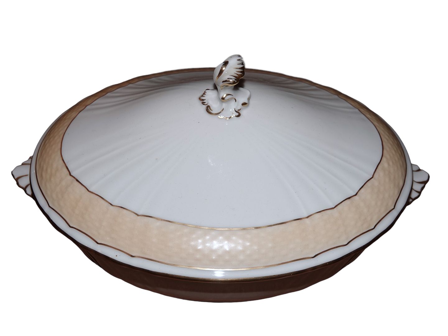 Royal Copenhagen Chamois Fond, oblong lidded bowl.