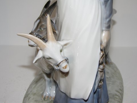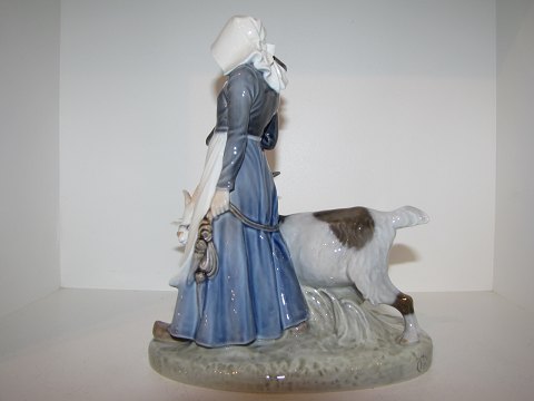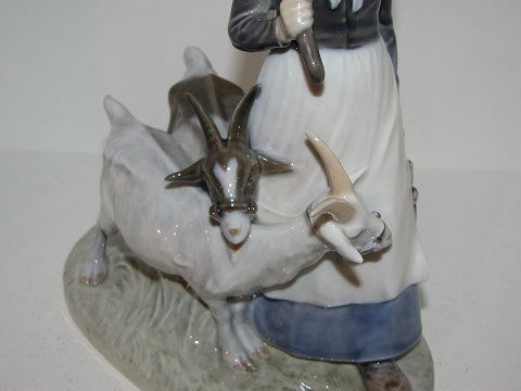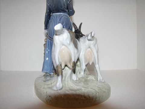 Stor Royal Copenhagen figur, bondepige med to geder.