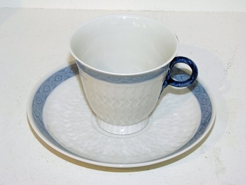 Royal Copenhagen Blå Vifte, kaffekopper med tilhørende underkopper. Blå Vifte stellet blev designet af Arnold Krog i 1909. Dekorationsnummer 1212/11538. Koppens diameter er 7,4 cm. Perfekt stand uden fejl.