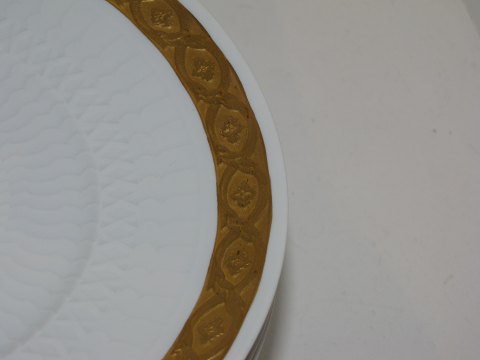 Royal Copenhagen Guld Vifte, sildeallerkner. Designet af Arnold Krog i 1909. Dekorationsnummer 414/11521. 1. sortering samt 2. sortering. Diameter 19.5 cm. Perfekt stand uden fejl. Der er otte (8) stk.