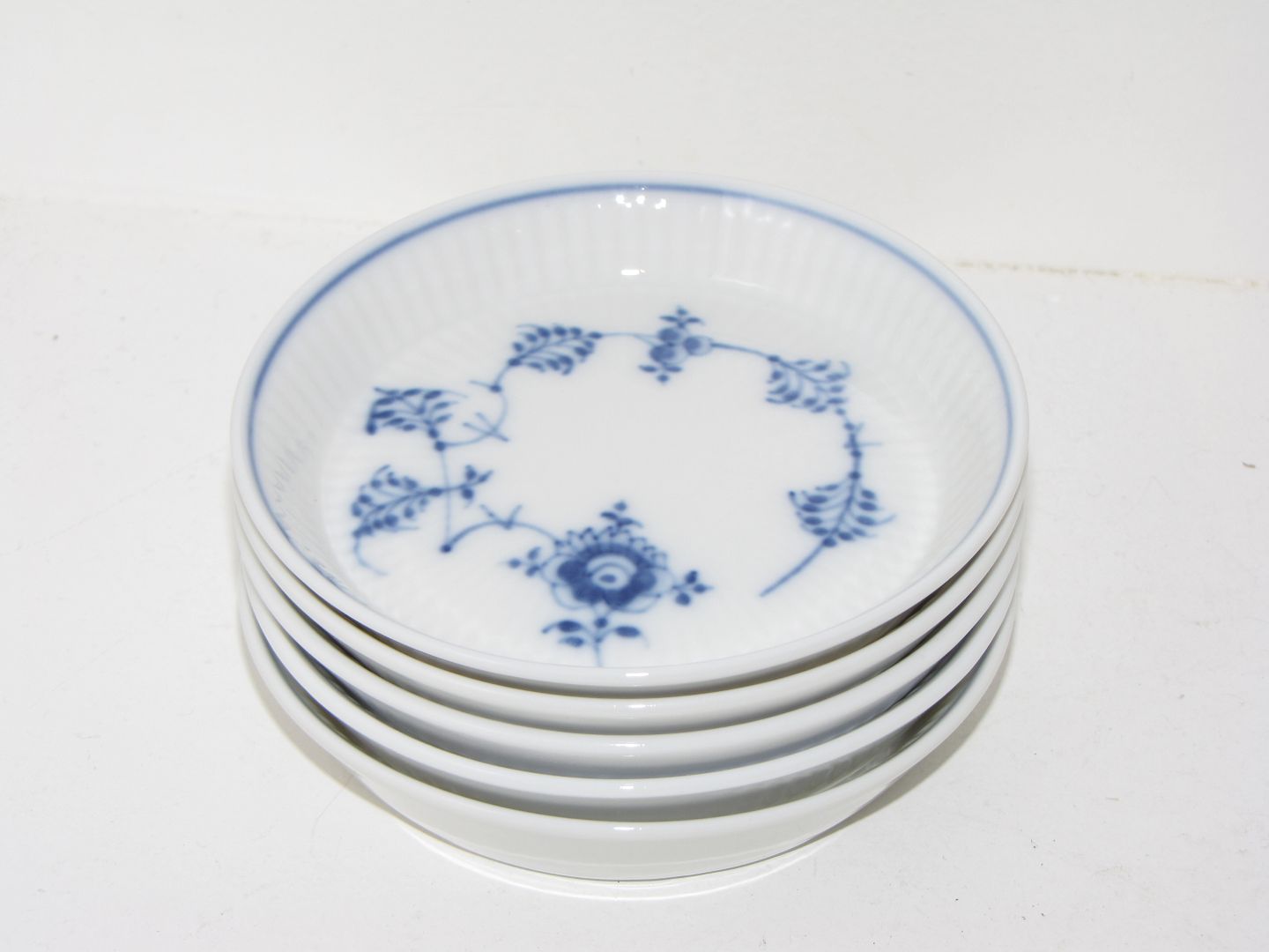 Royal Copenhagen Musselmalet Riflet, lille skål med kant til smør, fyrfadslys eller småt tilbehør til f.eks. sushi. Dekorationsnummer 1/2185. 1. sortering. Diameter 9,0 cm. Perfekt stand uden fejl.