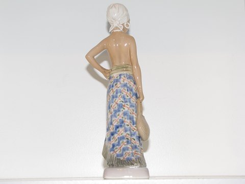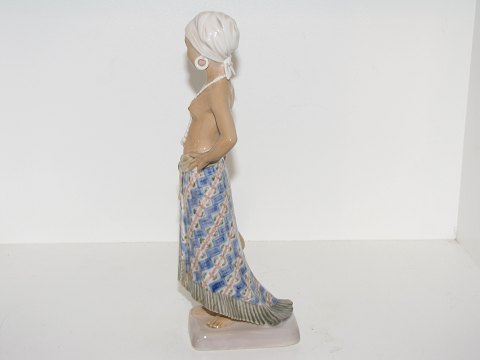 Dahl Jensen orientalsk figur, pige fra Øst Sierra Leone. Af fabriksmærket ses det, at denne er produceret mellem 1928 og 1985. Dekorationsnummer 1117. 2. sortering. Højde 24,5 cm. Perfekt stand uden fejl.