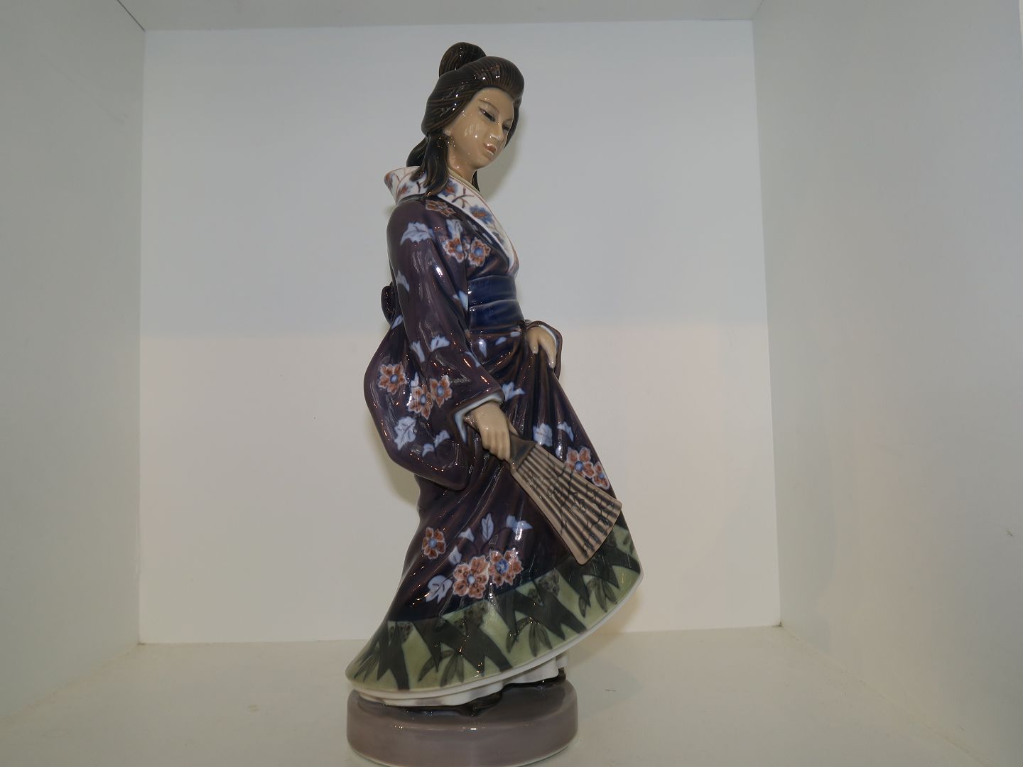 Stor Dahl Jensen figur, Japanerinde. Af fabriksmærket ses det, at denne er produceret mellem 1928 og 1985. Dekorationsnummer 1159. 1. sortering. Højde 35,5 cm. Perfekt stand uden fejl.