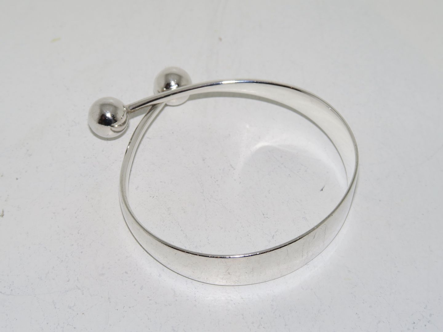 Hans Hansen sterlingsølv, armring i moderne design. Indvendig mål 6,7 cm. Der er lidt overfladeridser ellers fin stand.