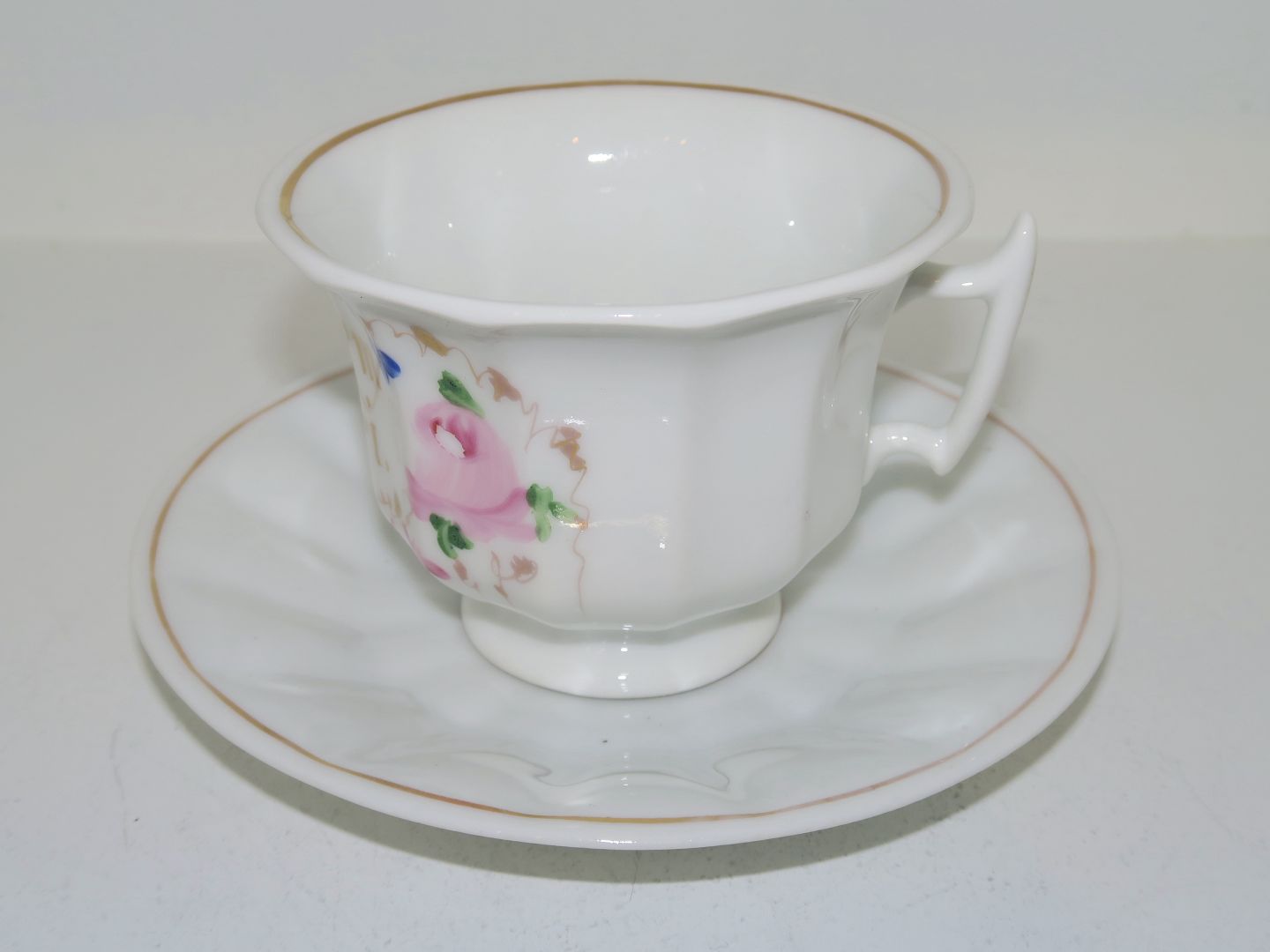 Bing & Grøndahl større kaffekop med underkop. På forsiden af koppen er teksten "FORGLEM MIG EI".