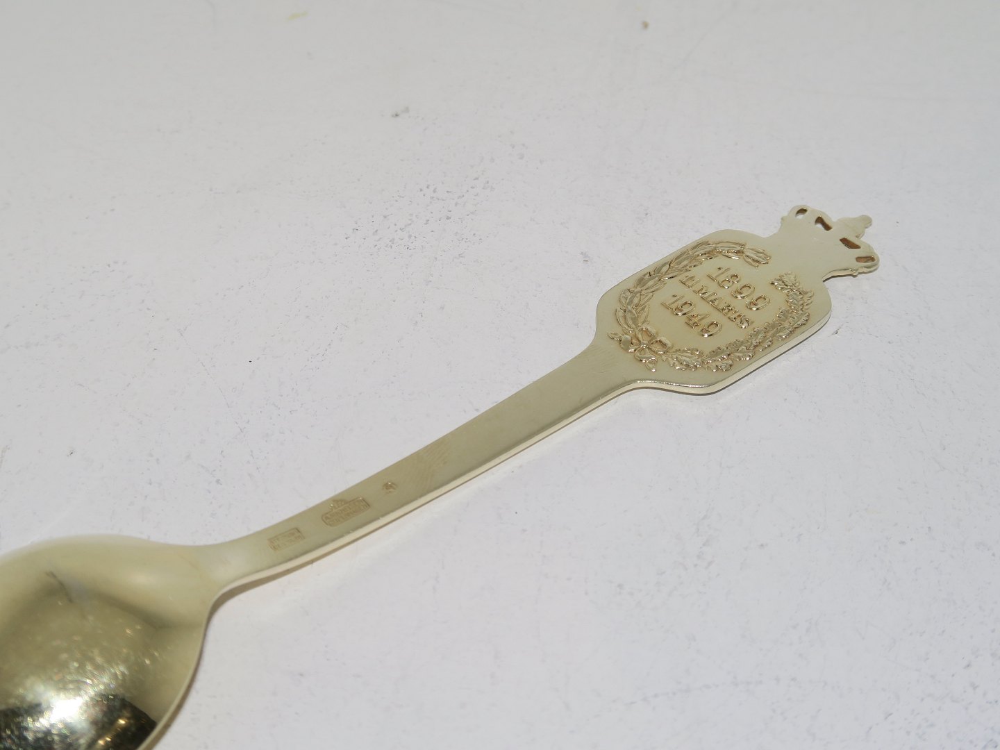 Anton Michelsen forgyldt sterlingsølv, mindeske fra 1949. I anledning af Kong Frederik IX's 50 års fødselsdag den 11. marts 1949. Længde 16,0 cm. Perfekt stand.